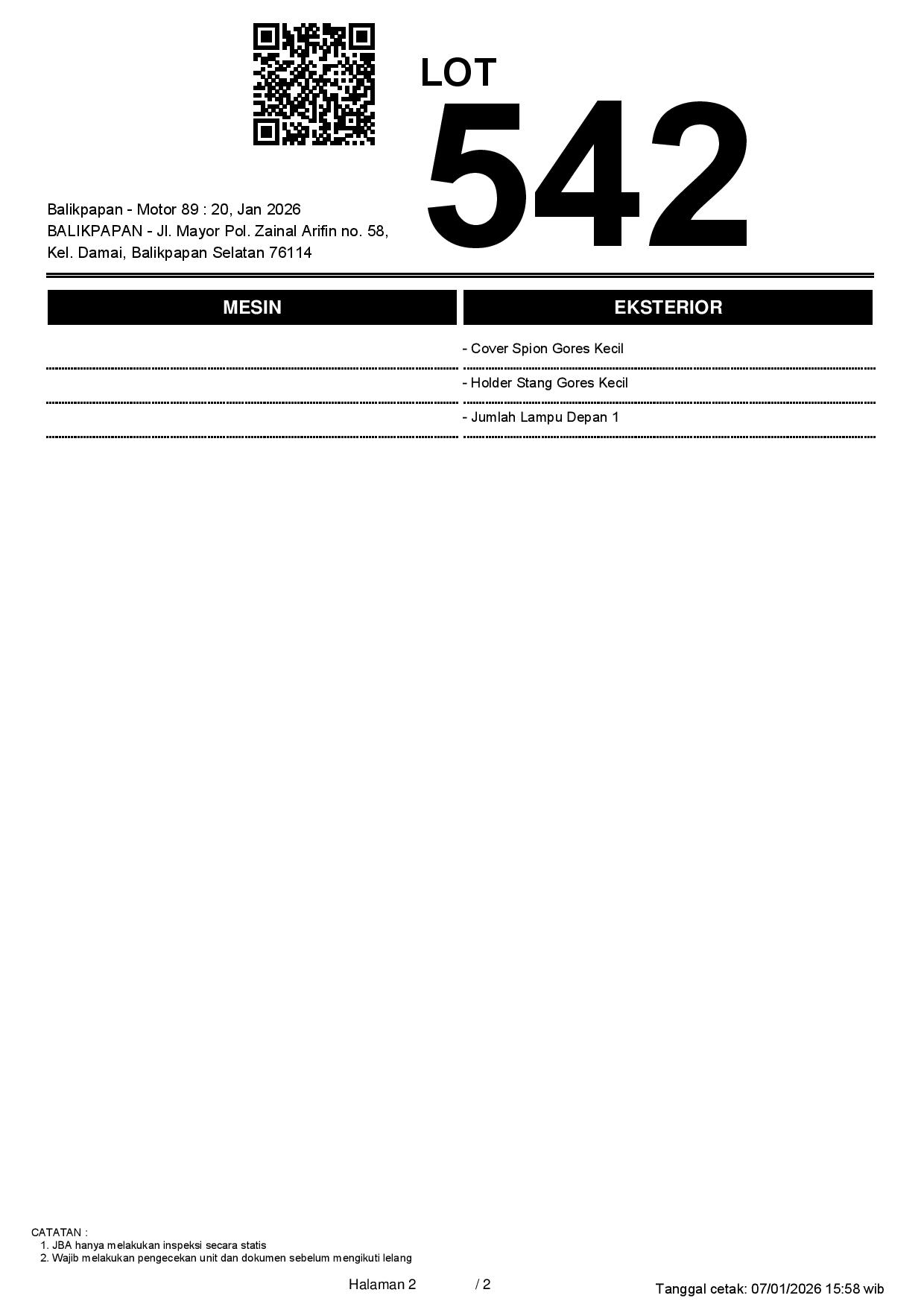 2. Peserta lelang wajib cek unit & dokumen