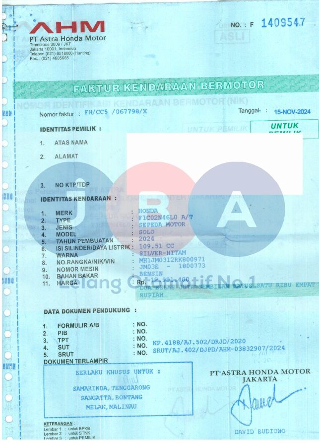NO CC PADA NOTICE PAJAK 109 // WARNA PADA DOK SILVER HITAM //