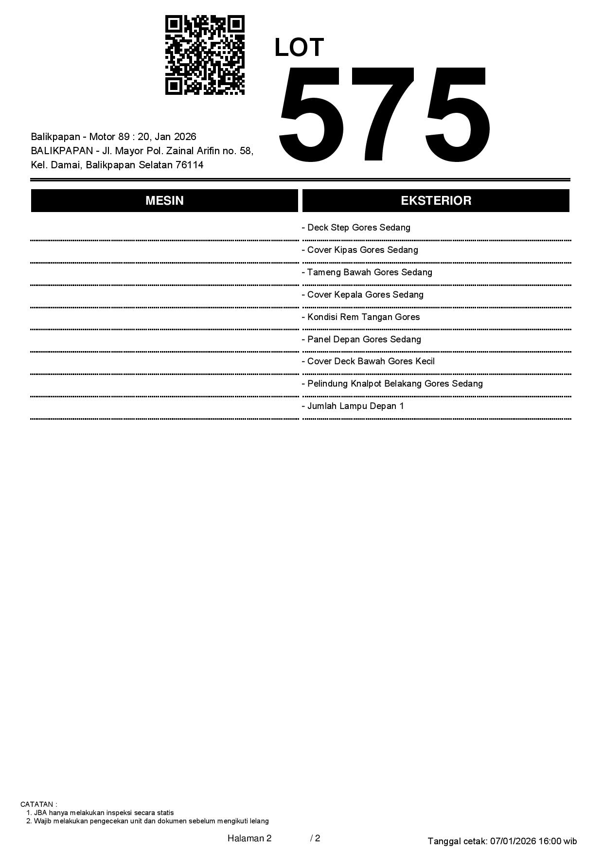 2. Peserta lelang wajib cek unit & dokumen