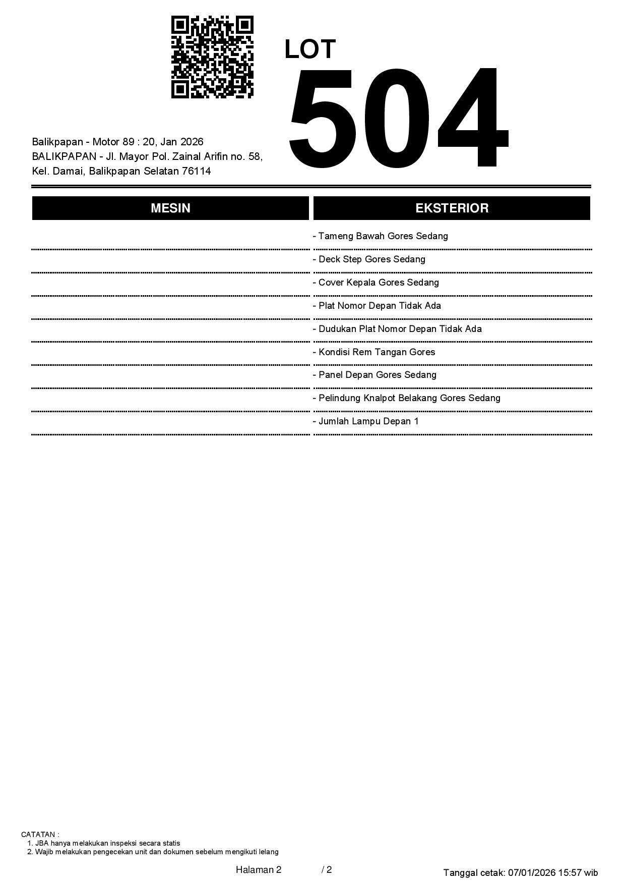 2. Peserta lelang wajib cek unit & dokumen