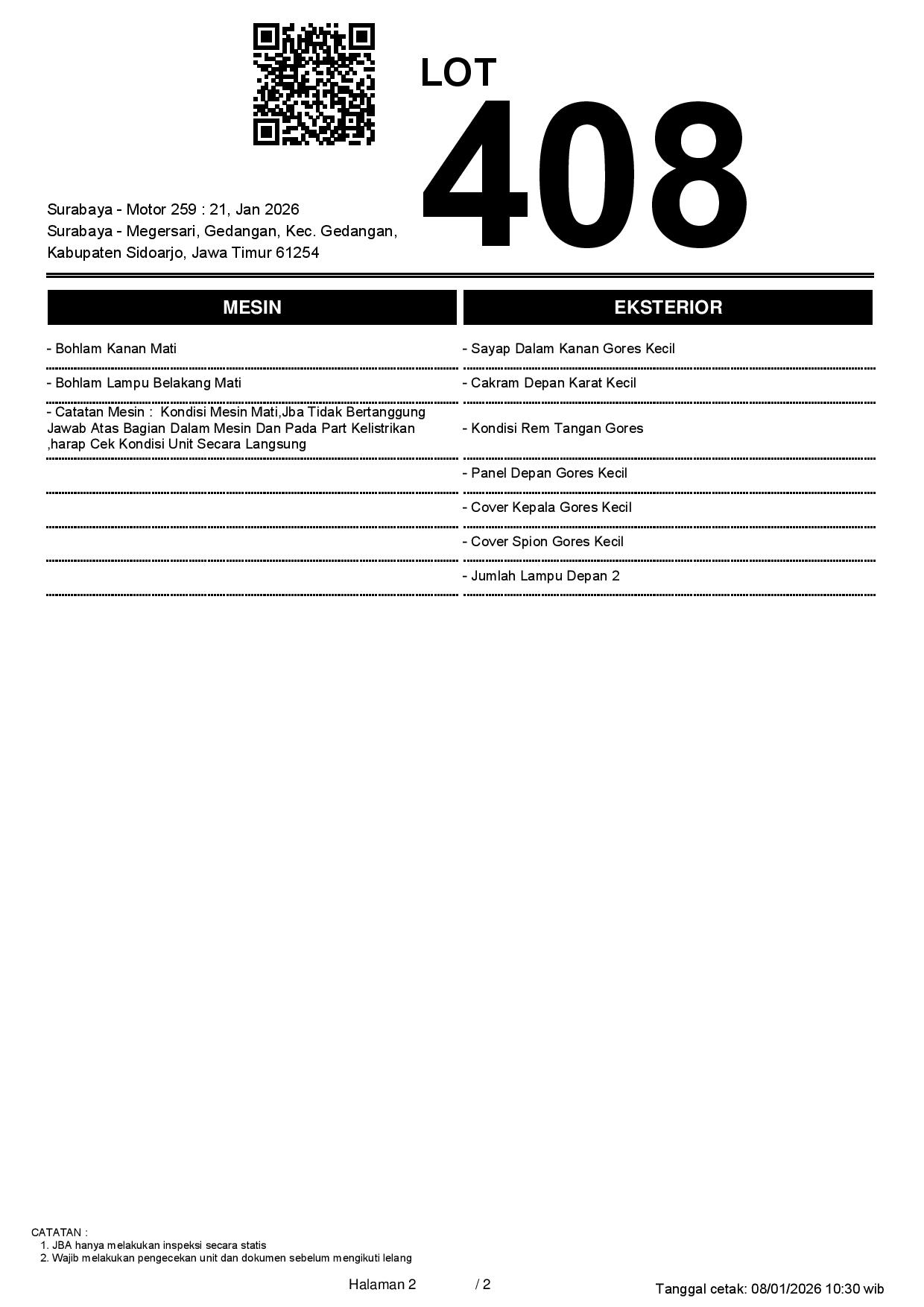 2. Peserta lelang wajib cek unit & dokumen