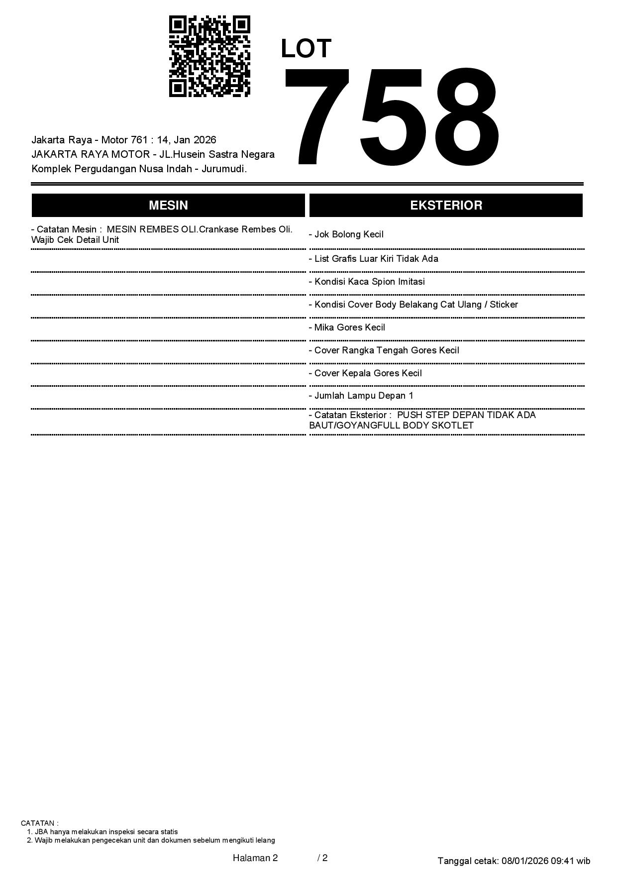 1. Peserta lelang wajib cek unit & dokumen