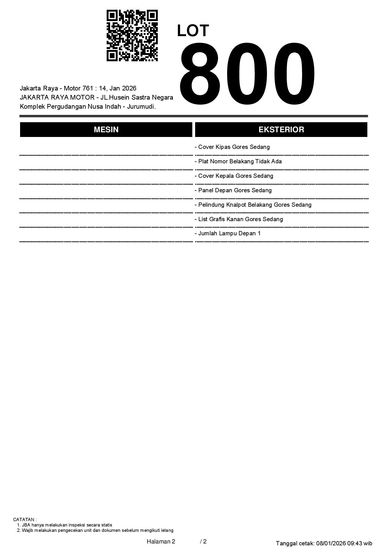 2. Peserta lelang wajib cek unit & dokumen