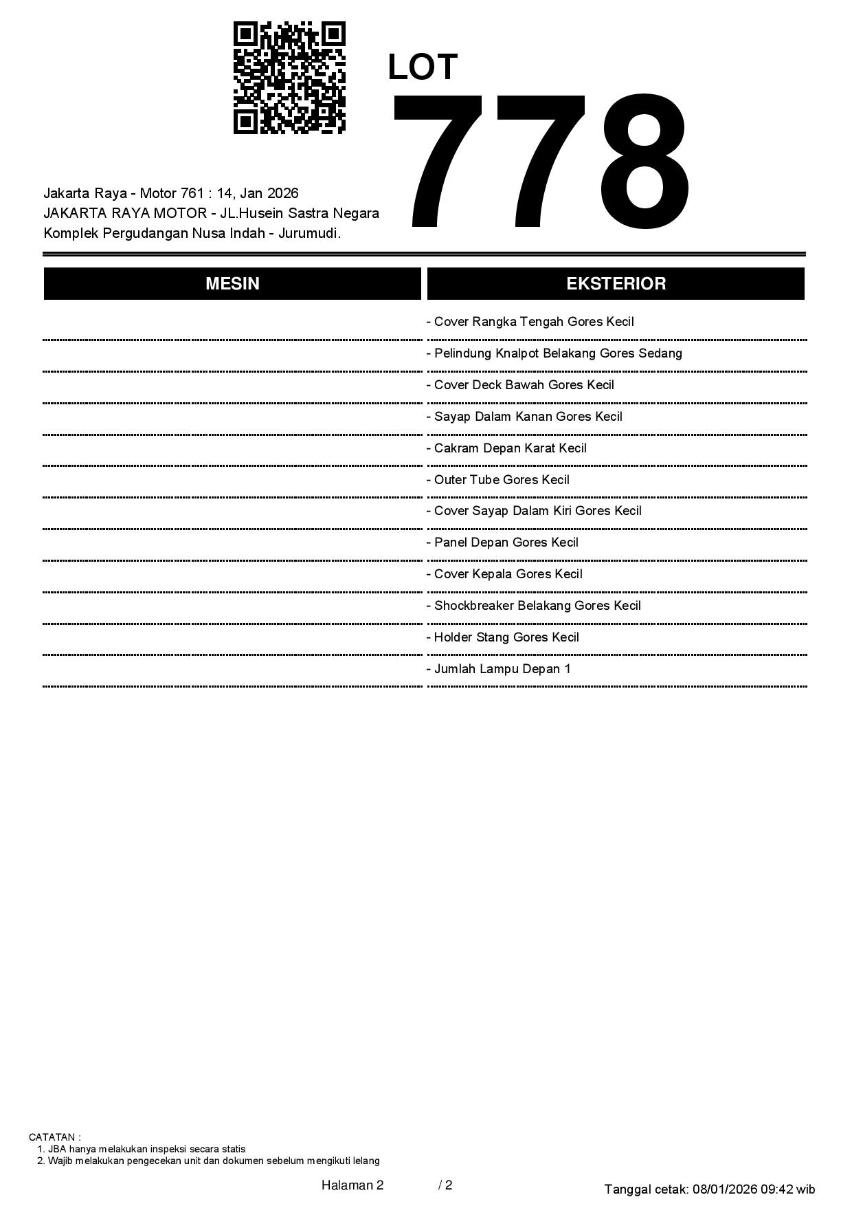 2. Peserta lelang wajib cek unit & dokumen