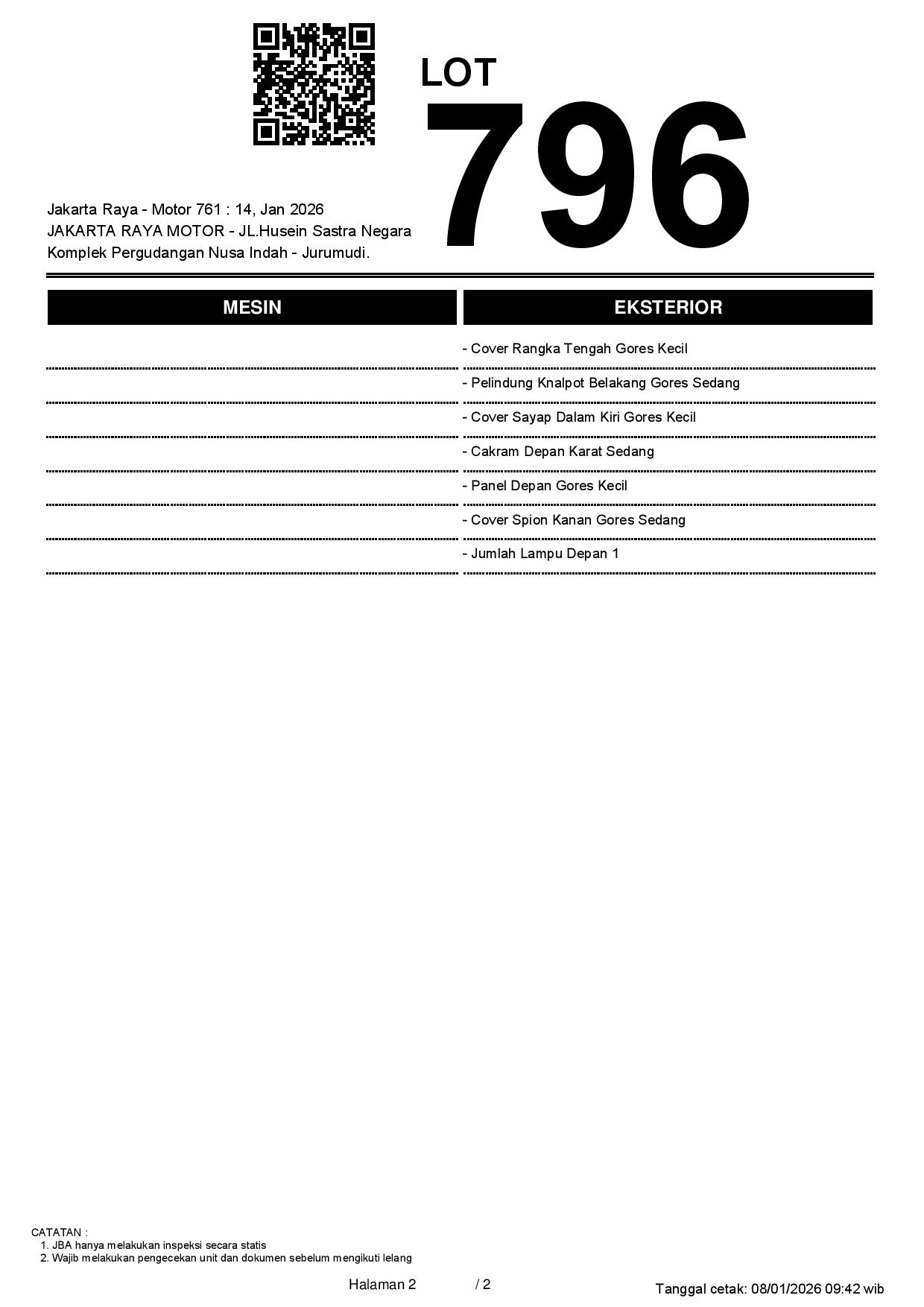 2. Peserta lelang wajib cek unit & dokumen