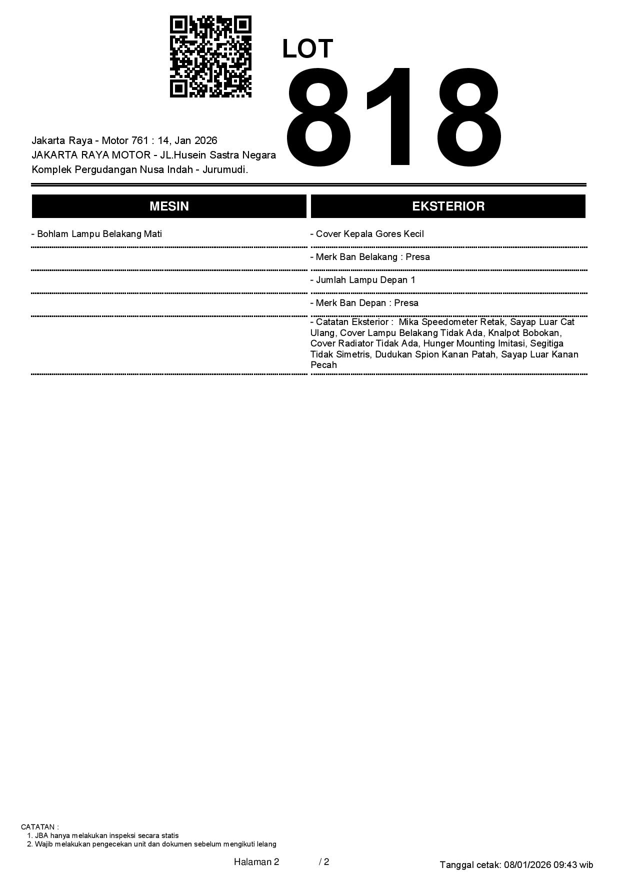 2. Peserta lelang wajib cek unit & dokumen