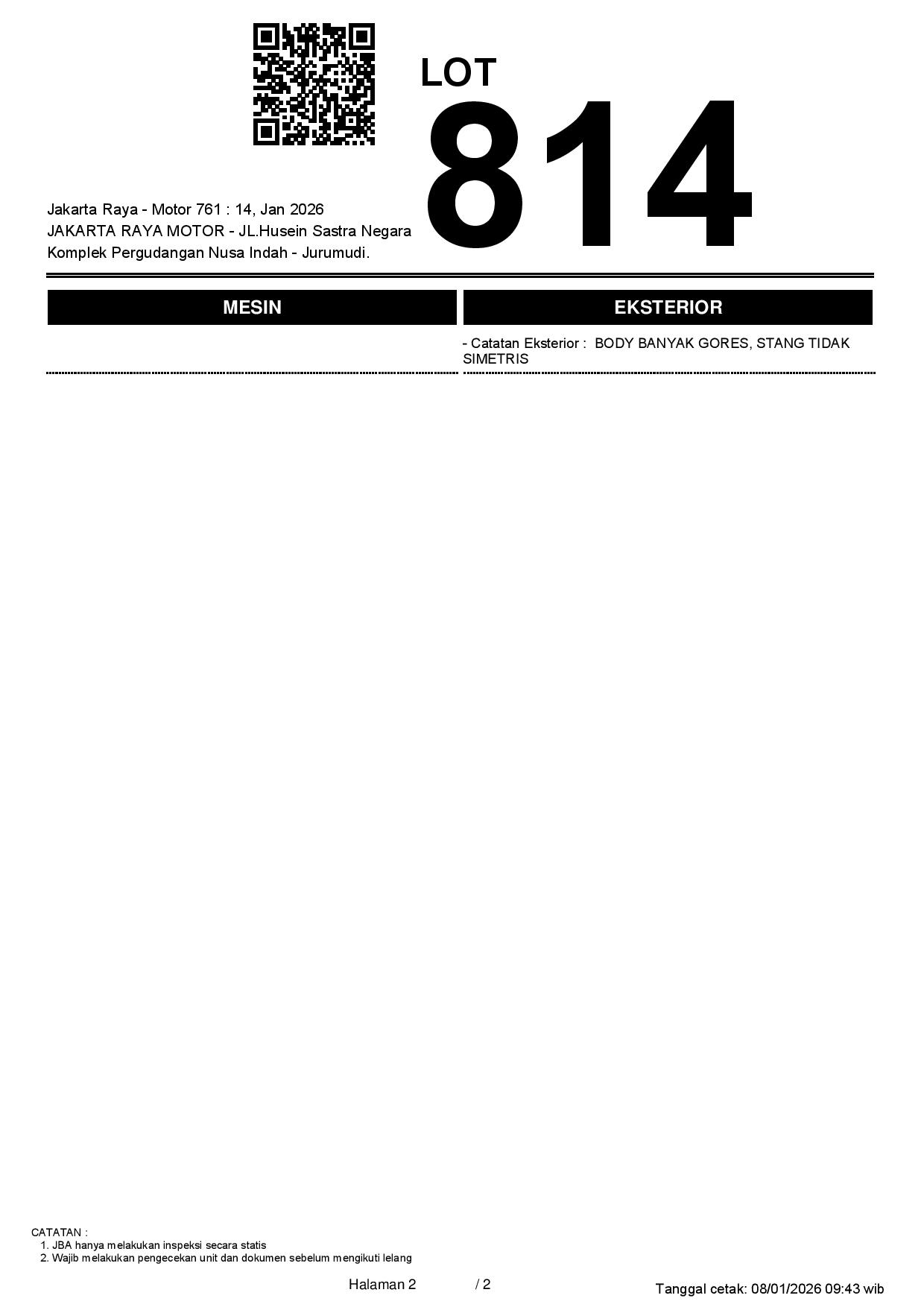 Tanggal Lelang: 14/01/2026 13:00 | WIB