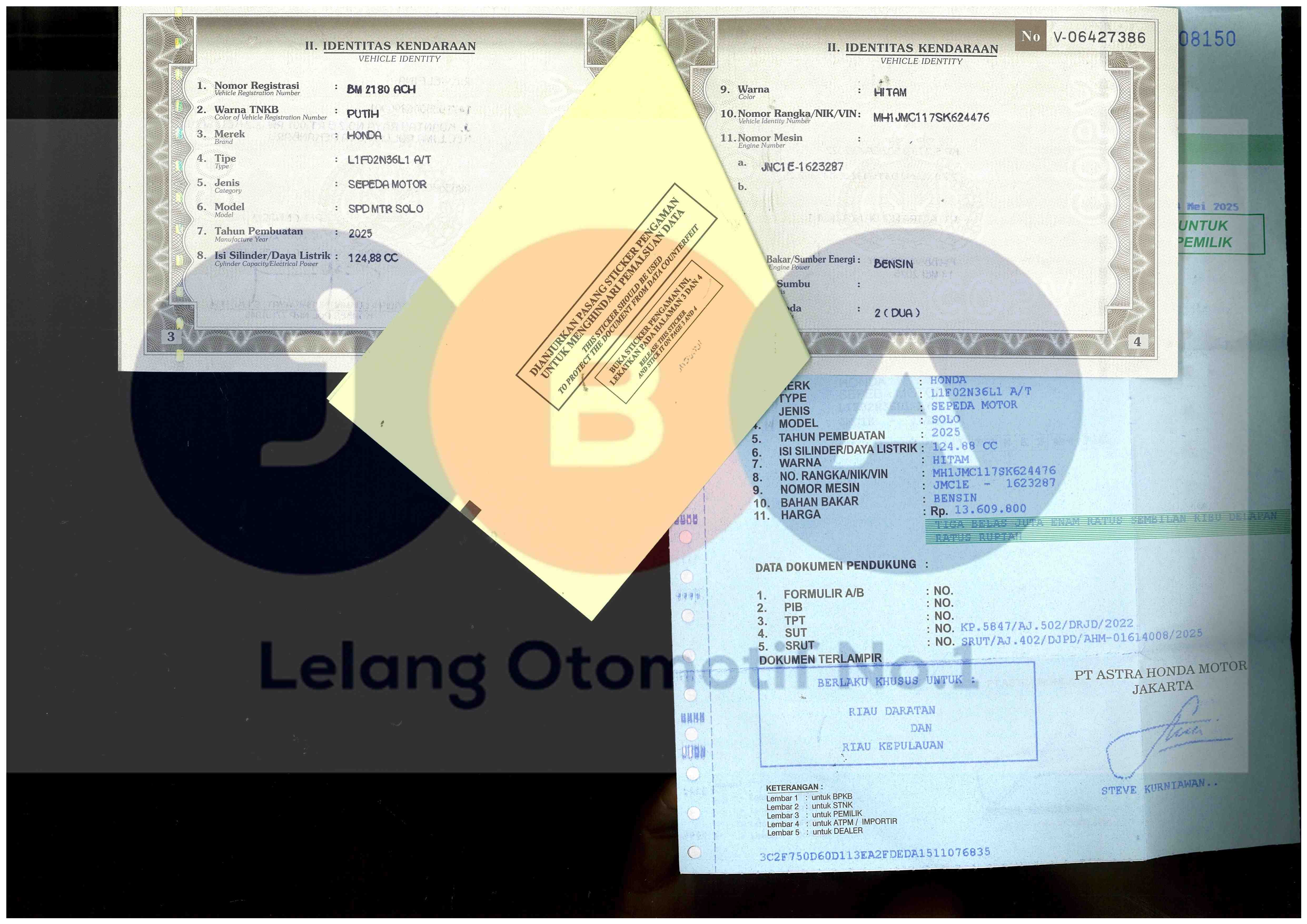 1 DIGIT NOKA DI BPKB BERBEDA DENGAN STNK DAN FISIK // PEMENANG WAJIB TTD SURAT PERNYATAAN BERMATERAI DI JBA