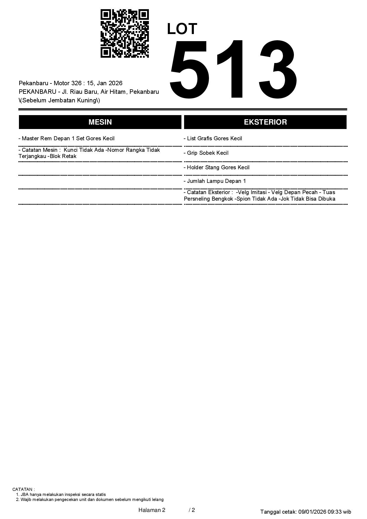 2. Peserta lelang wajib cek unit & dokumen