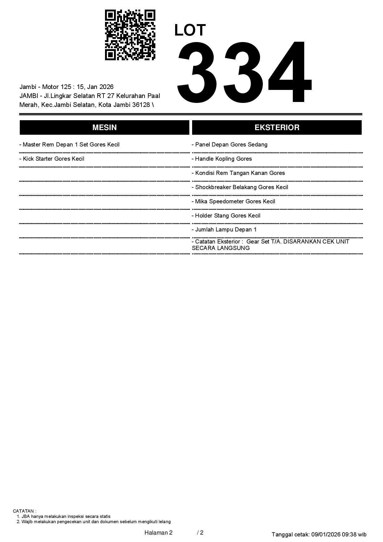 2. Peserta lelang wajib cek unit & dokumen