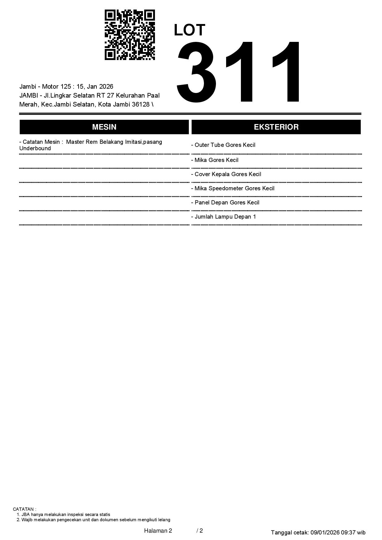 Tanggal Lelang: 15/01/2026 11:00 | WIB