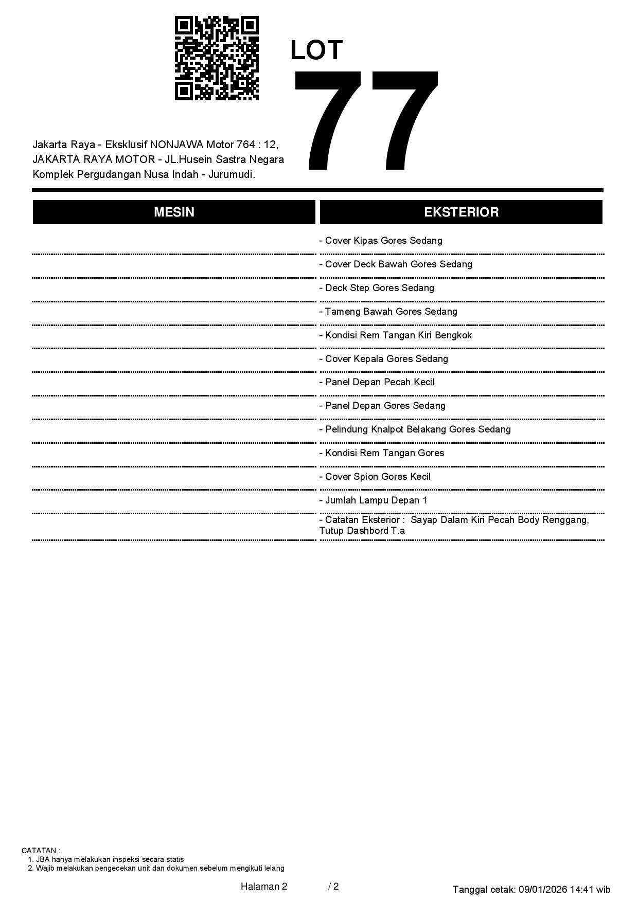 2. Peserta lelang wajib cek unit & dokumen