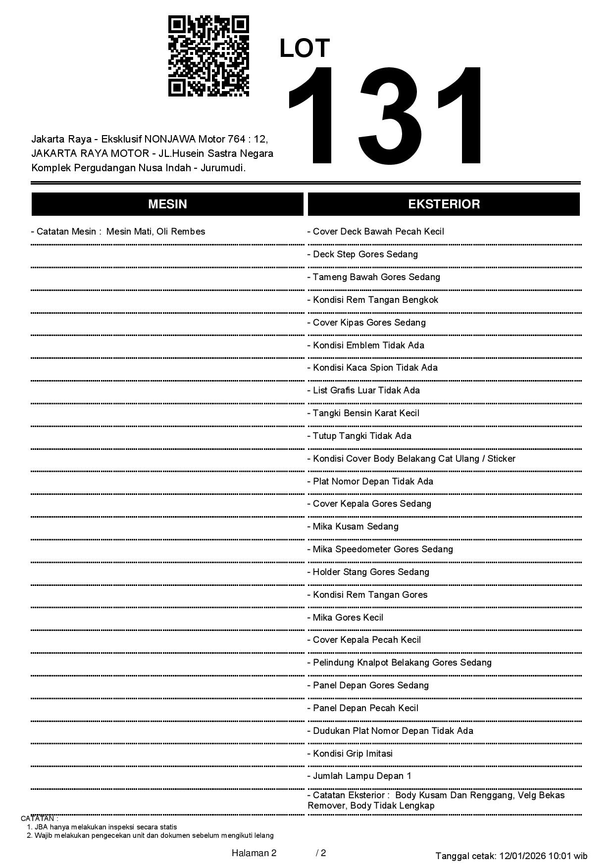 2. Peserta lelang wajib cek unit & dokumen