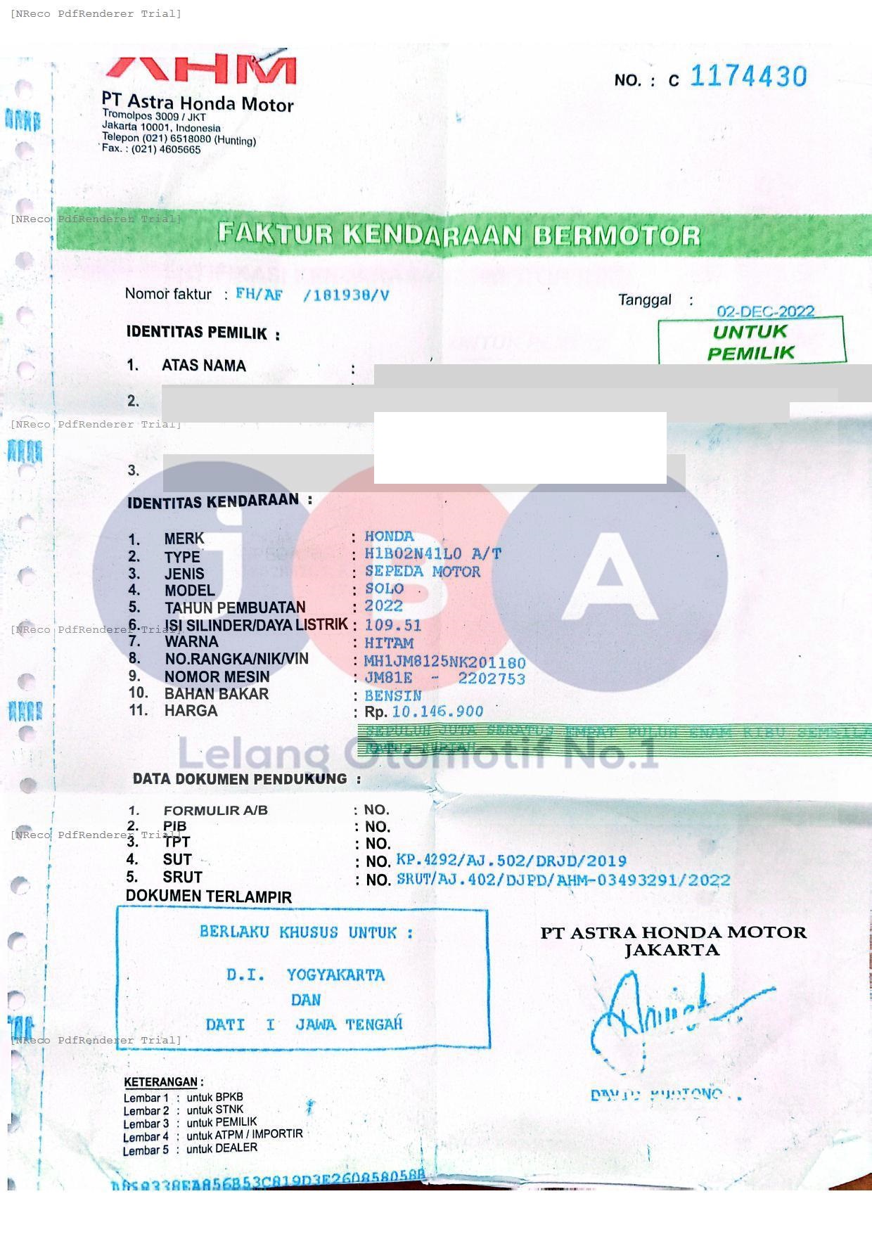 Nomor Rangka