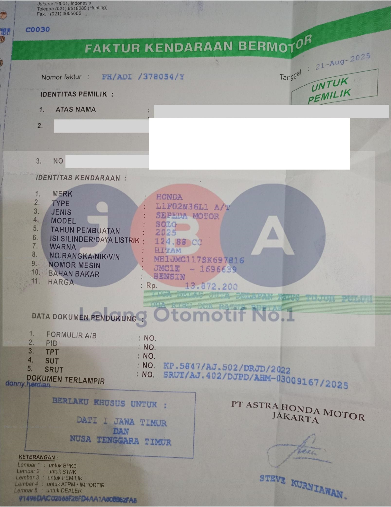 Nomor Rangka