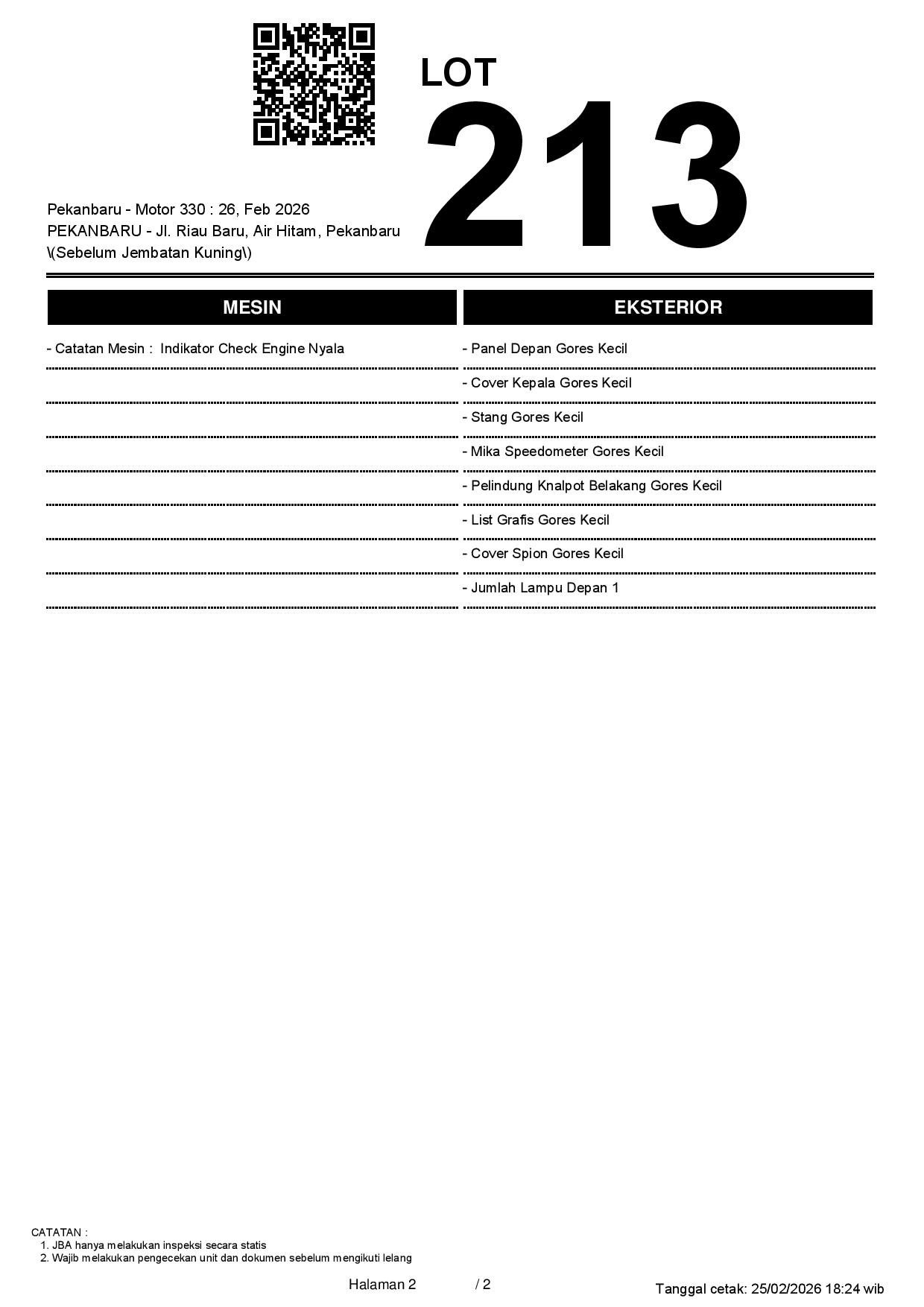 2. Peserta lelang wajib cek unit & dokumen