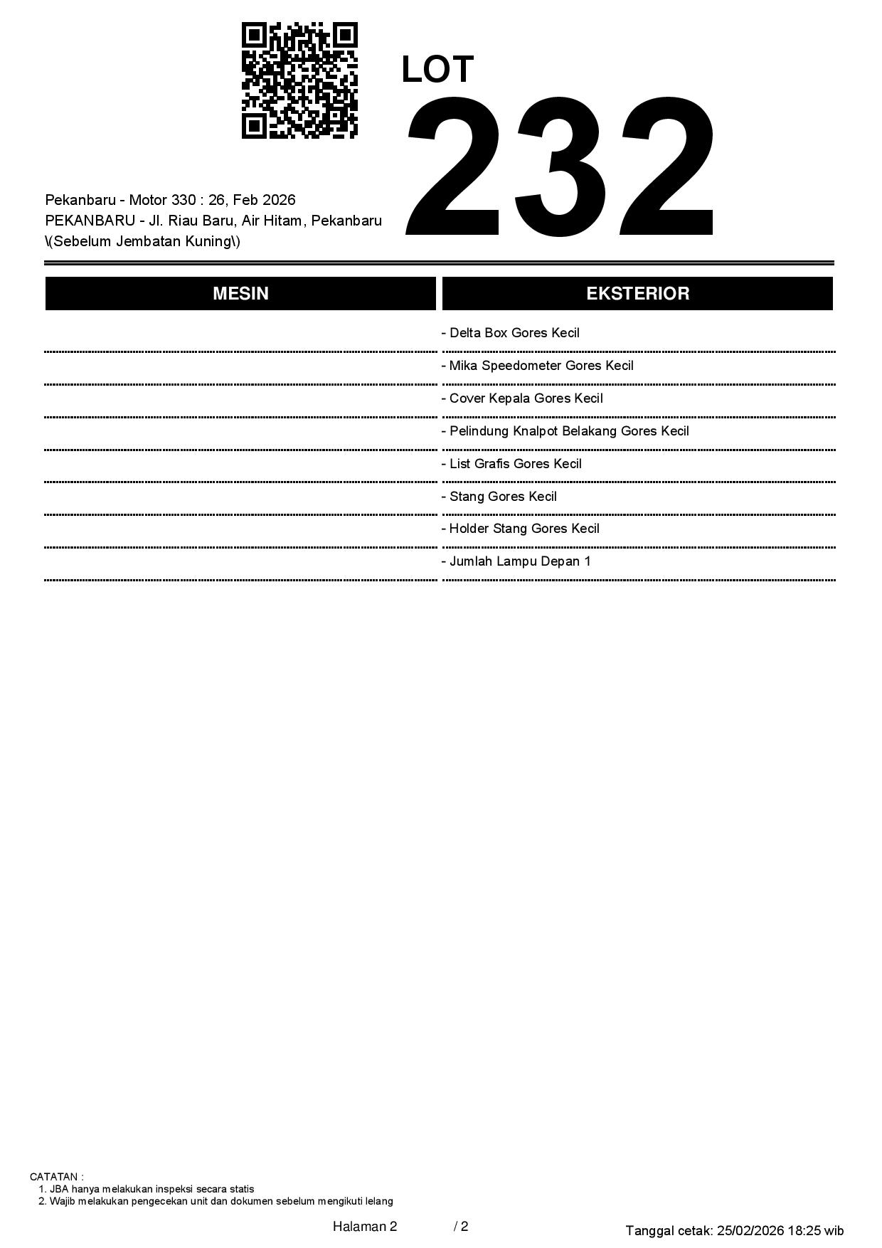 2. Peserta lelang wajib cek unit & dokumen