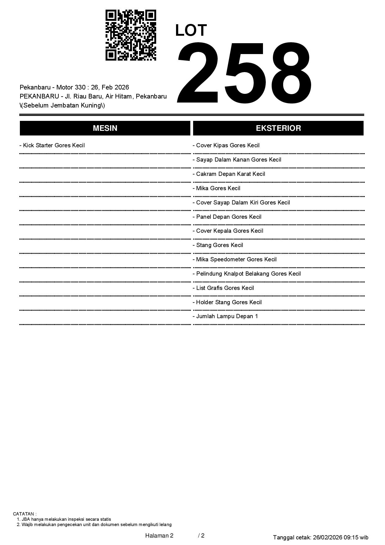 2. Peserta lelang wajib cek unit & dokumen
