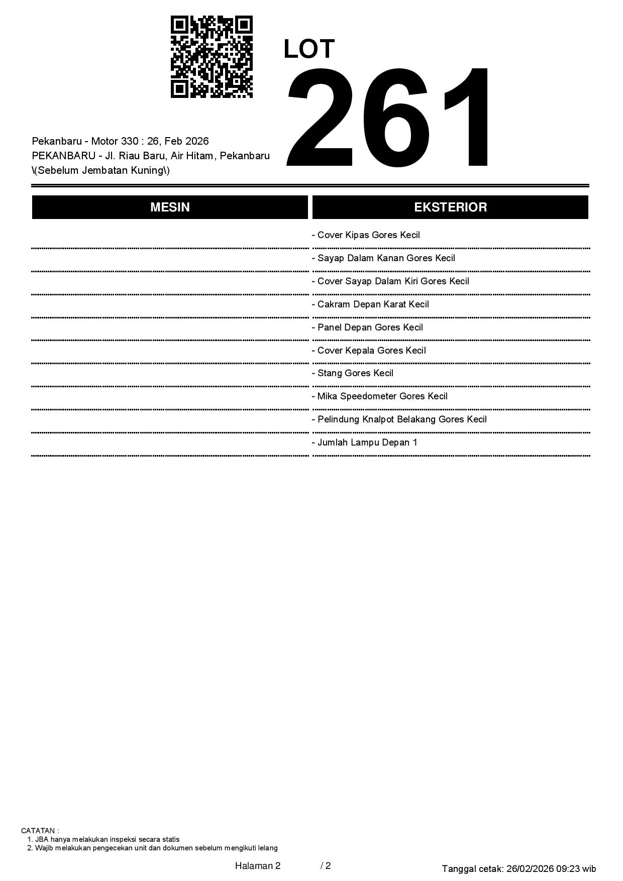 2. Peserta lelang wajib cek unit & dokumen