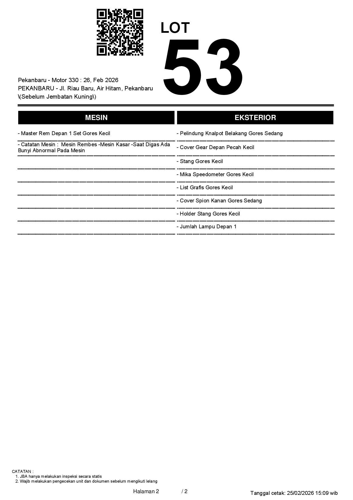 2. Peserta lelang wajib cek unit & dokumen