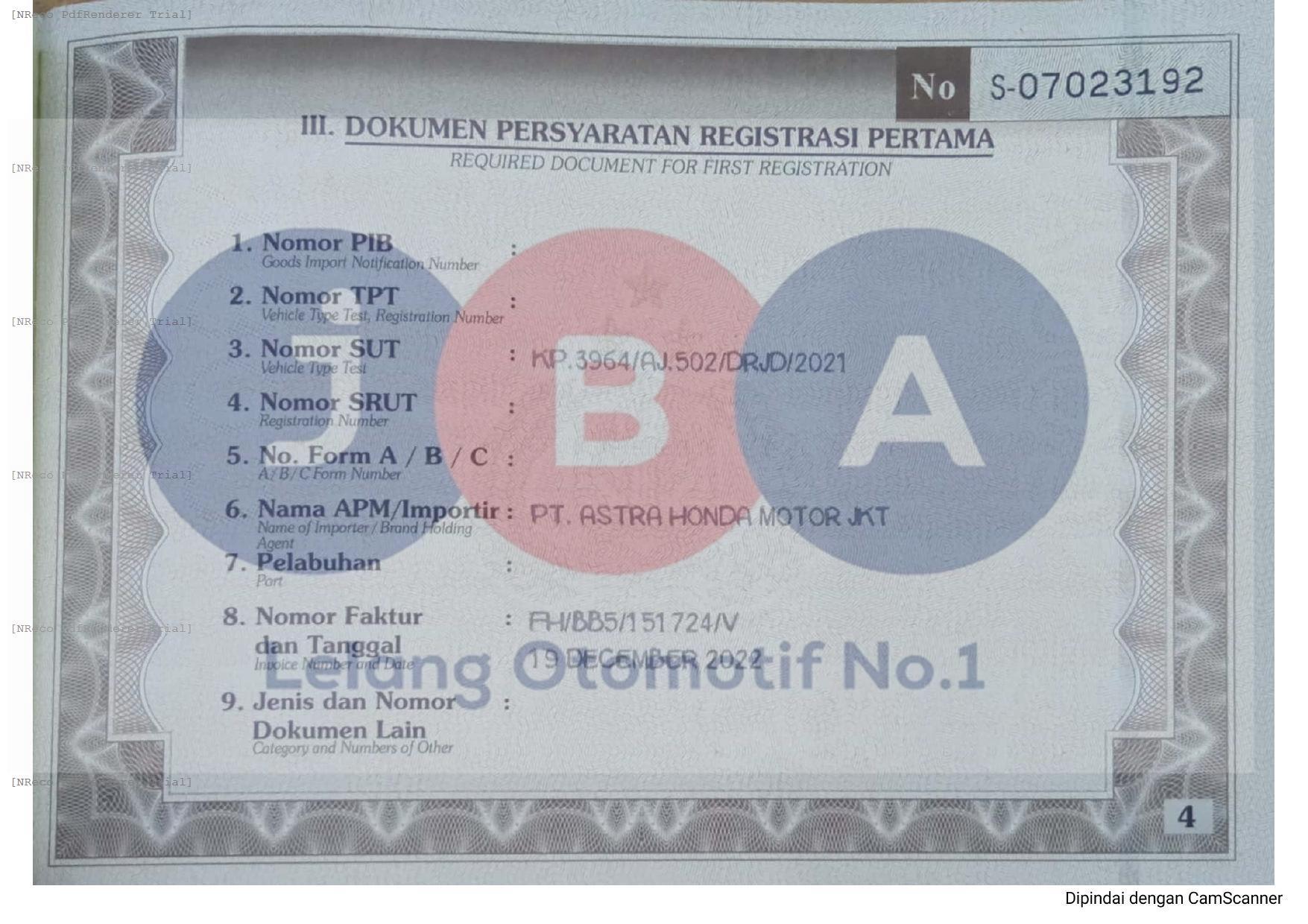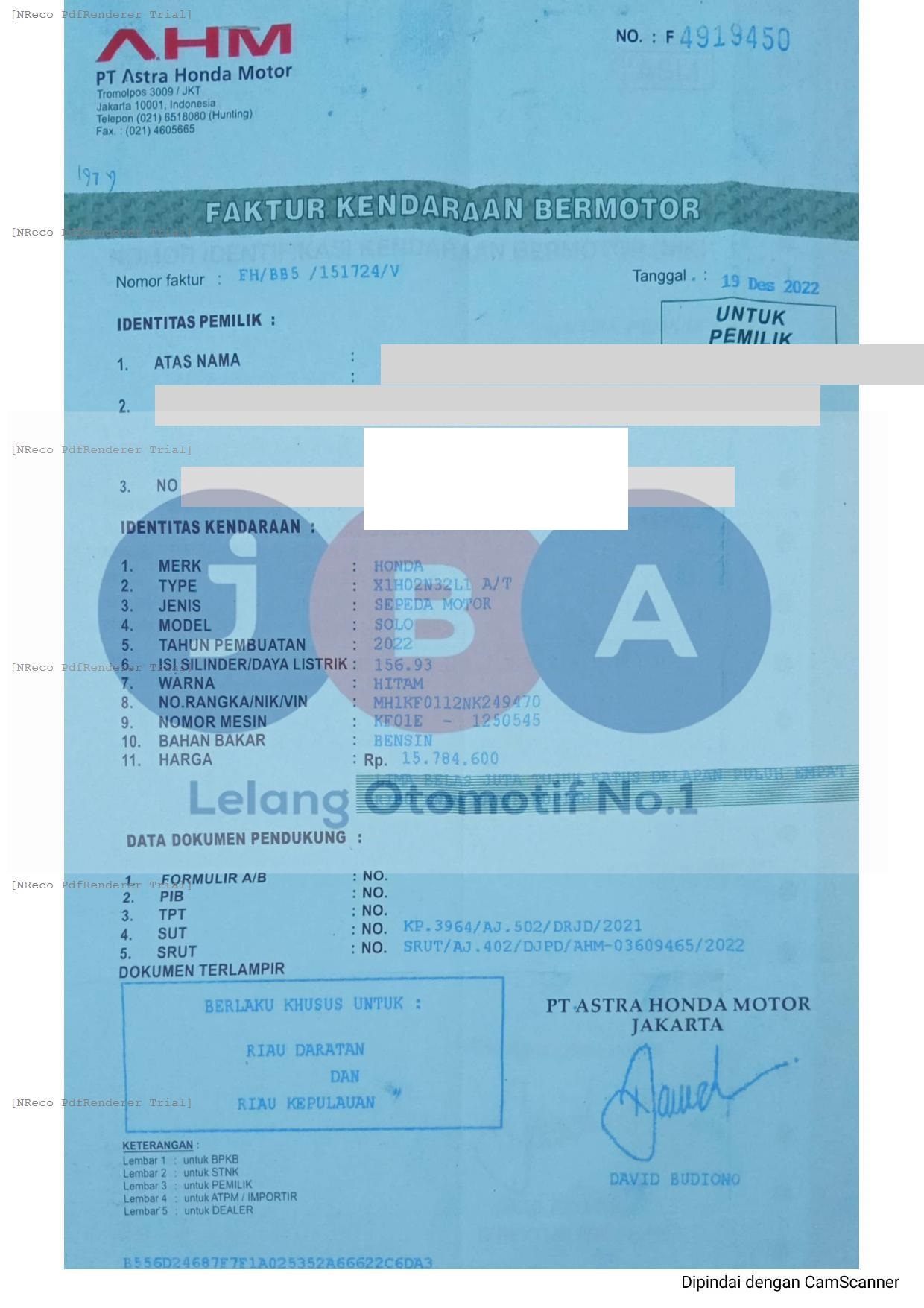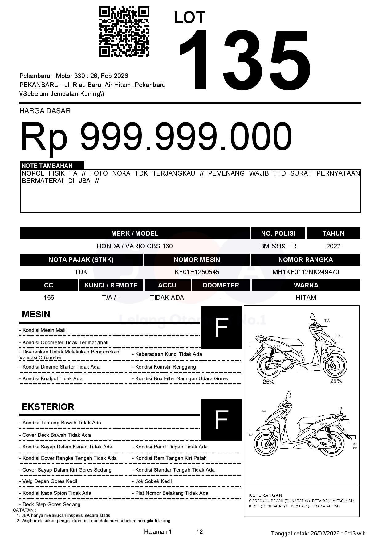NOPOL FISIK TA // FOTO NOKA TDK TERJANGKAU // PEMENANG WAJIB TTD SURAT PERNYATAAN BERMATERAI DI JBA //