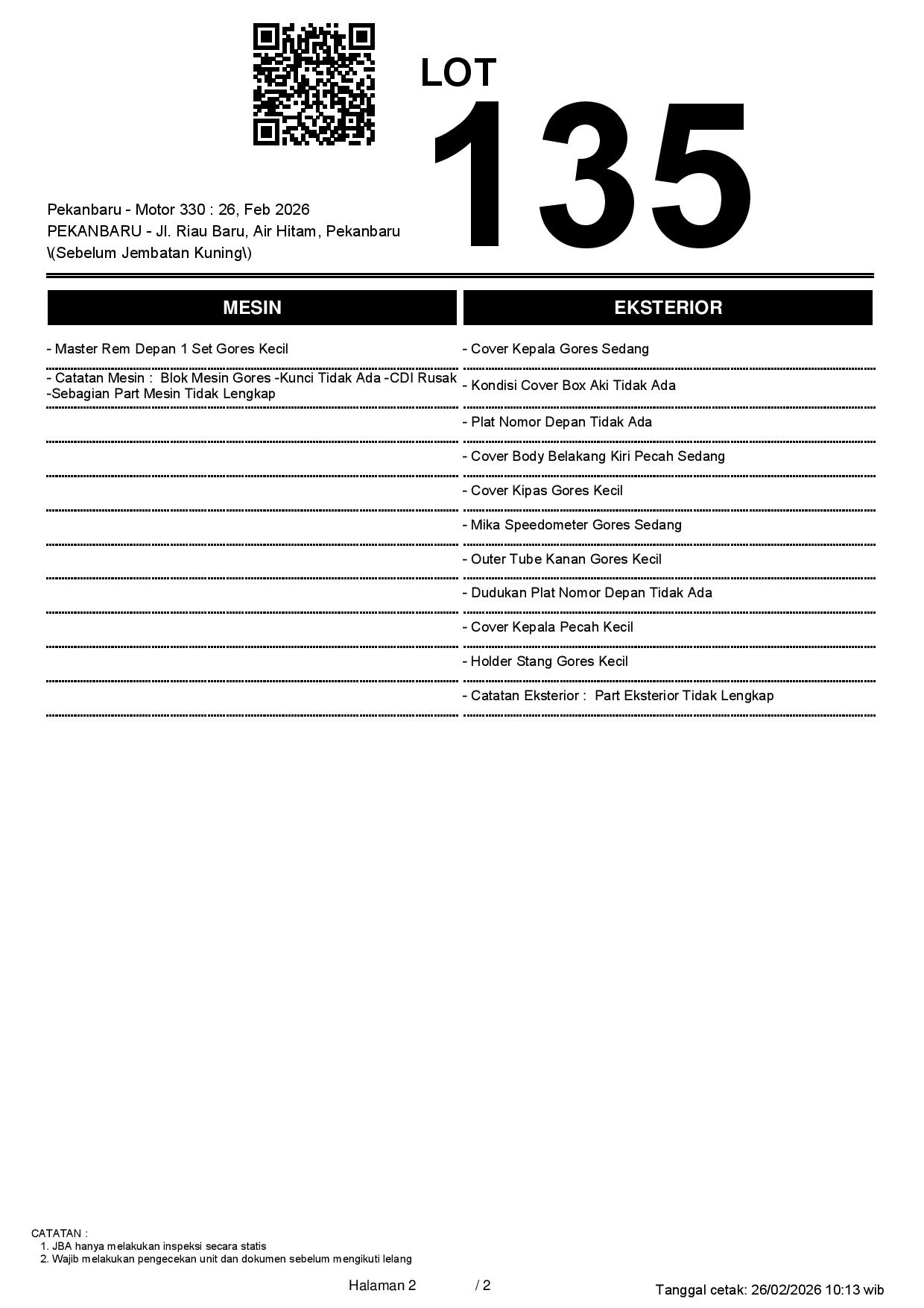 1. Peserta lelang wajib cek unit & dokumen