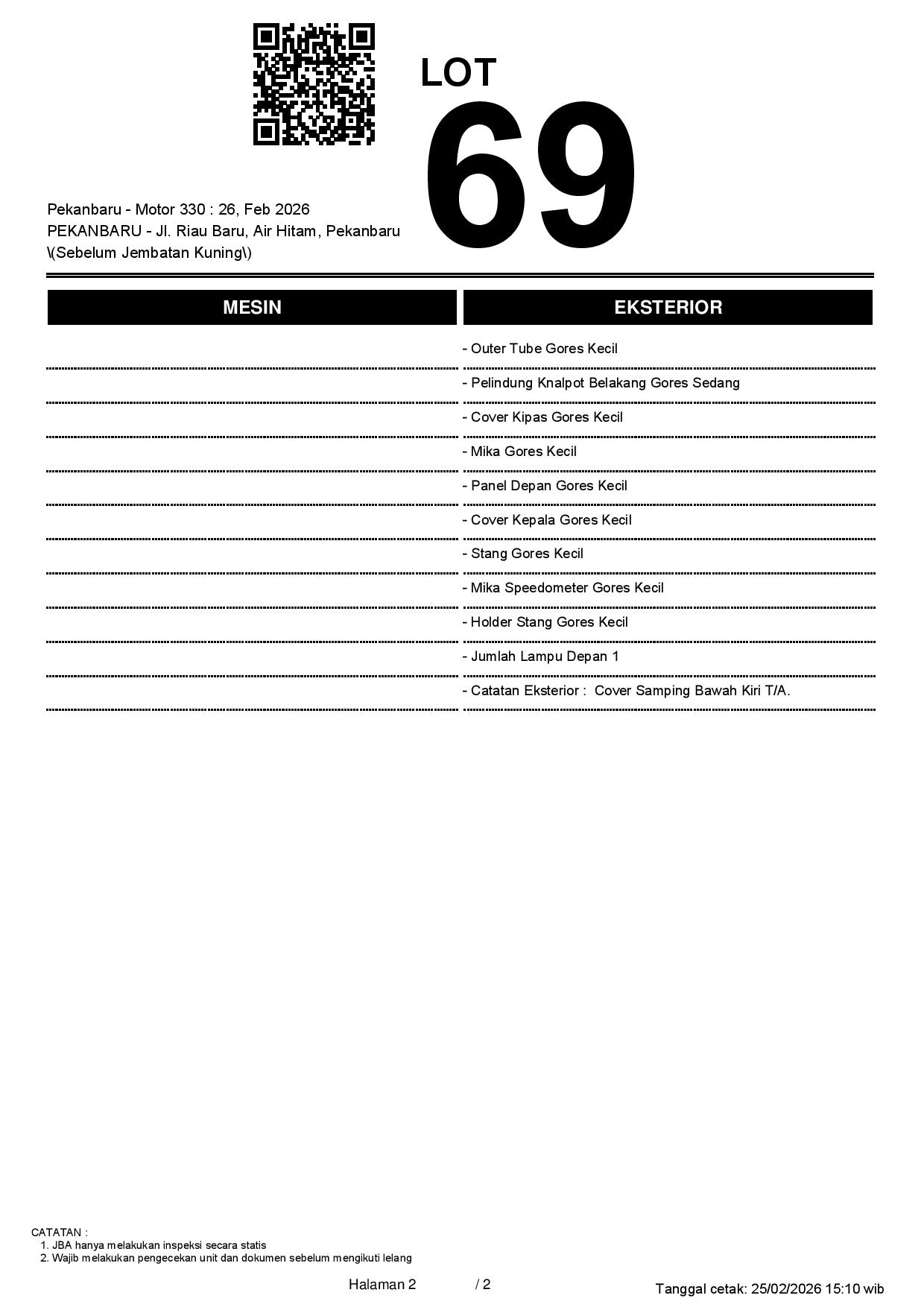 2. Peserta lelang wajib cek unit & dokumen