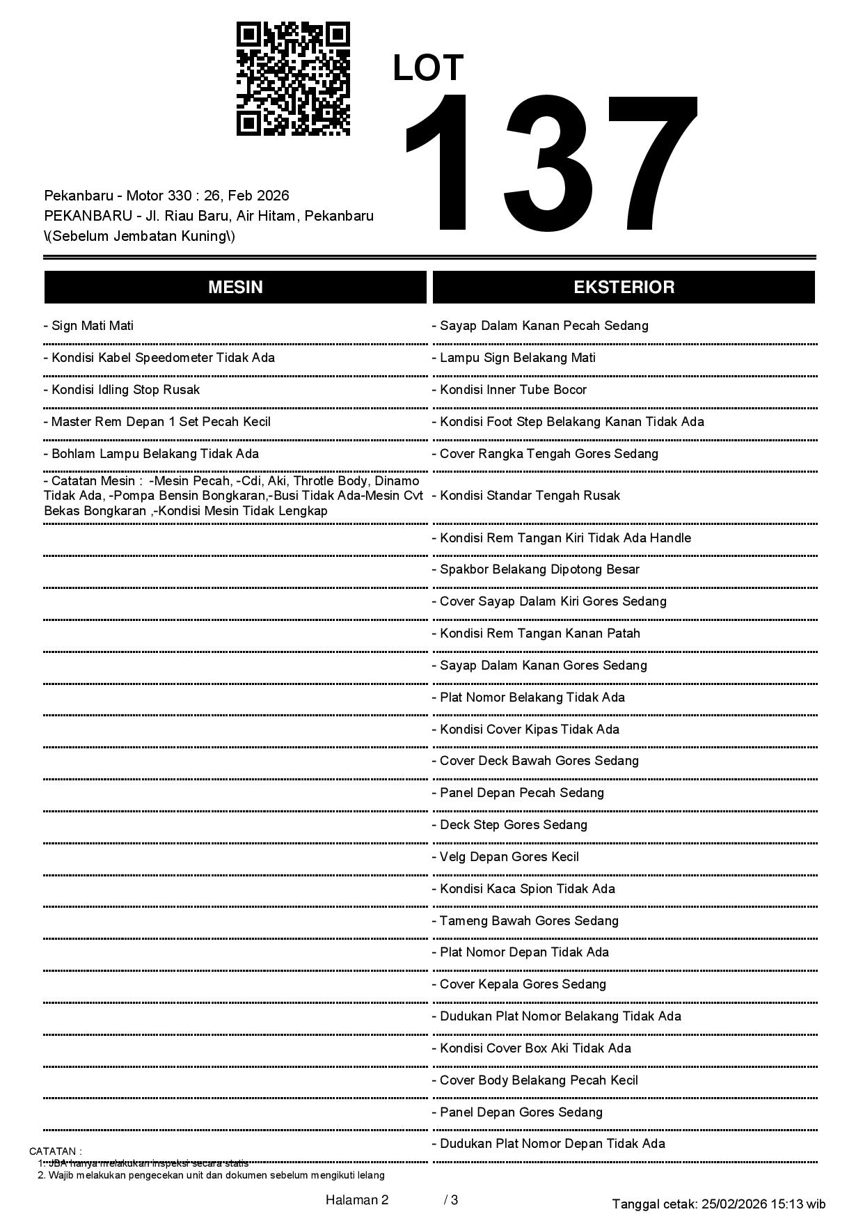 2. Peserta lelang wajib cek unit & dokumen