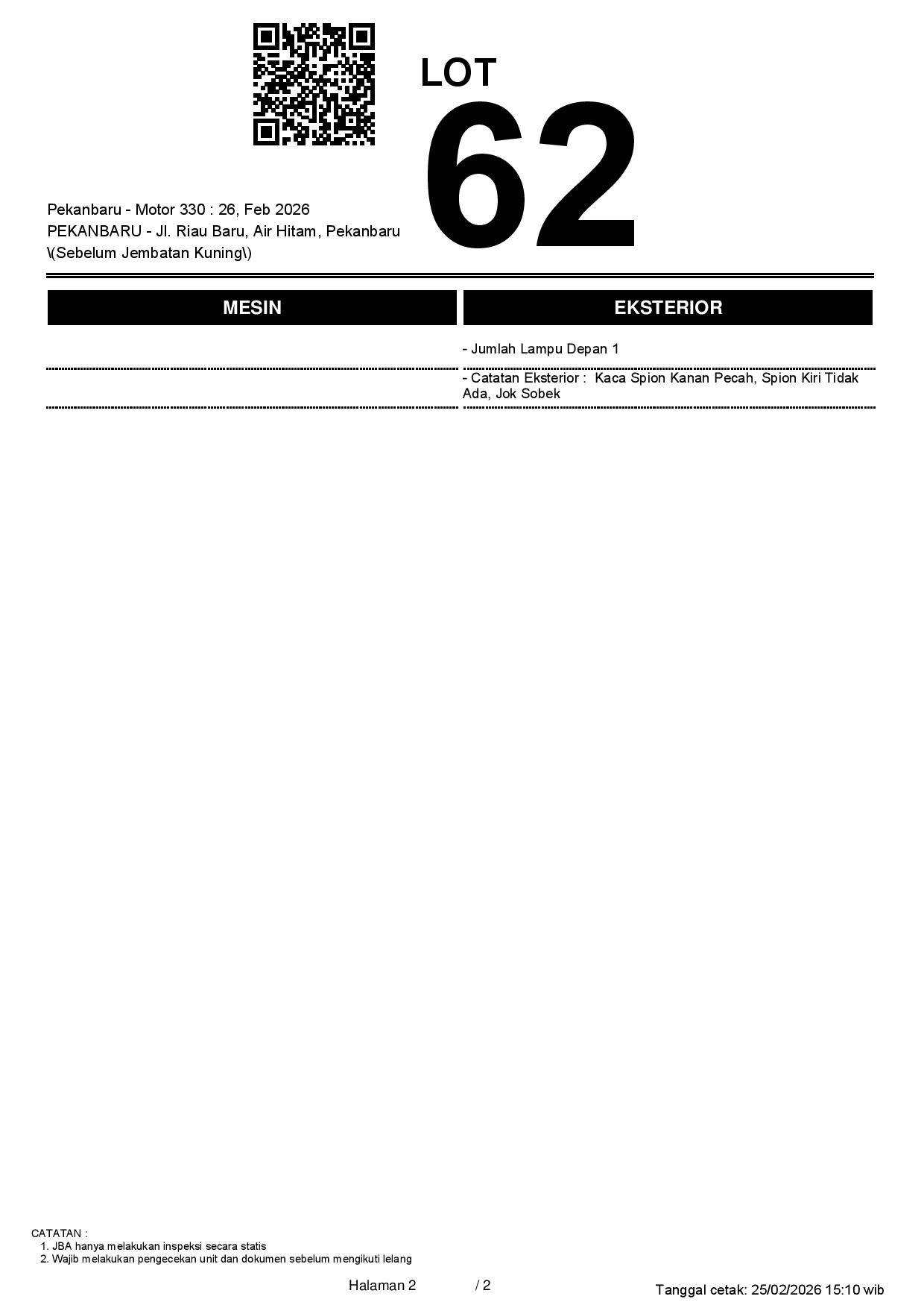 2. Peserta lelang wajib cek unit & dokumen