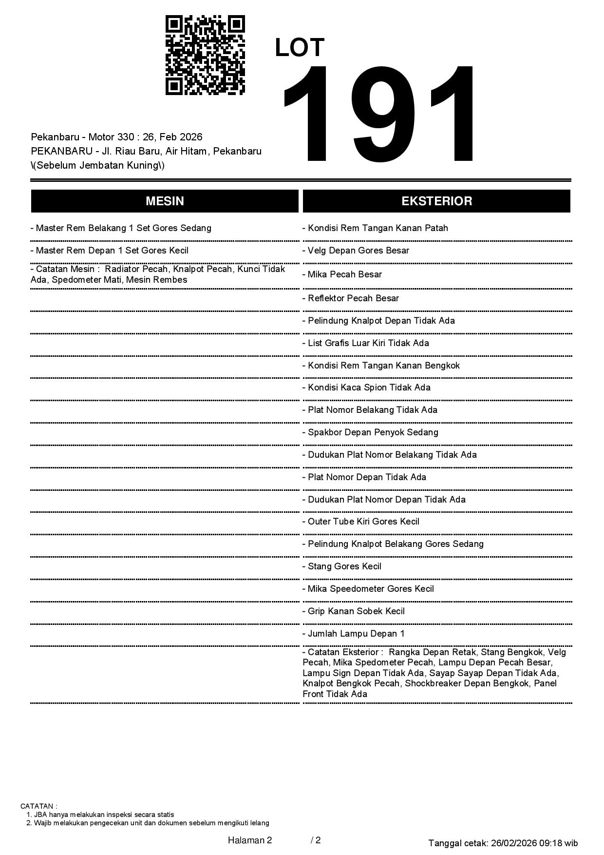 2. Peserta lelang wajib cek unit & dokumen