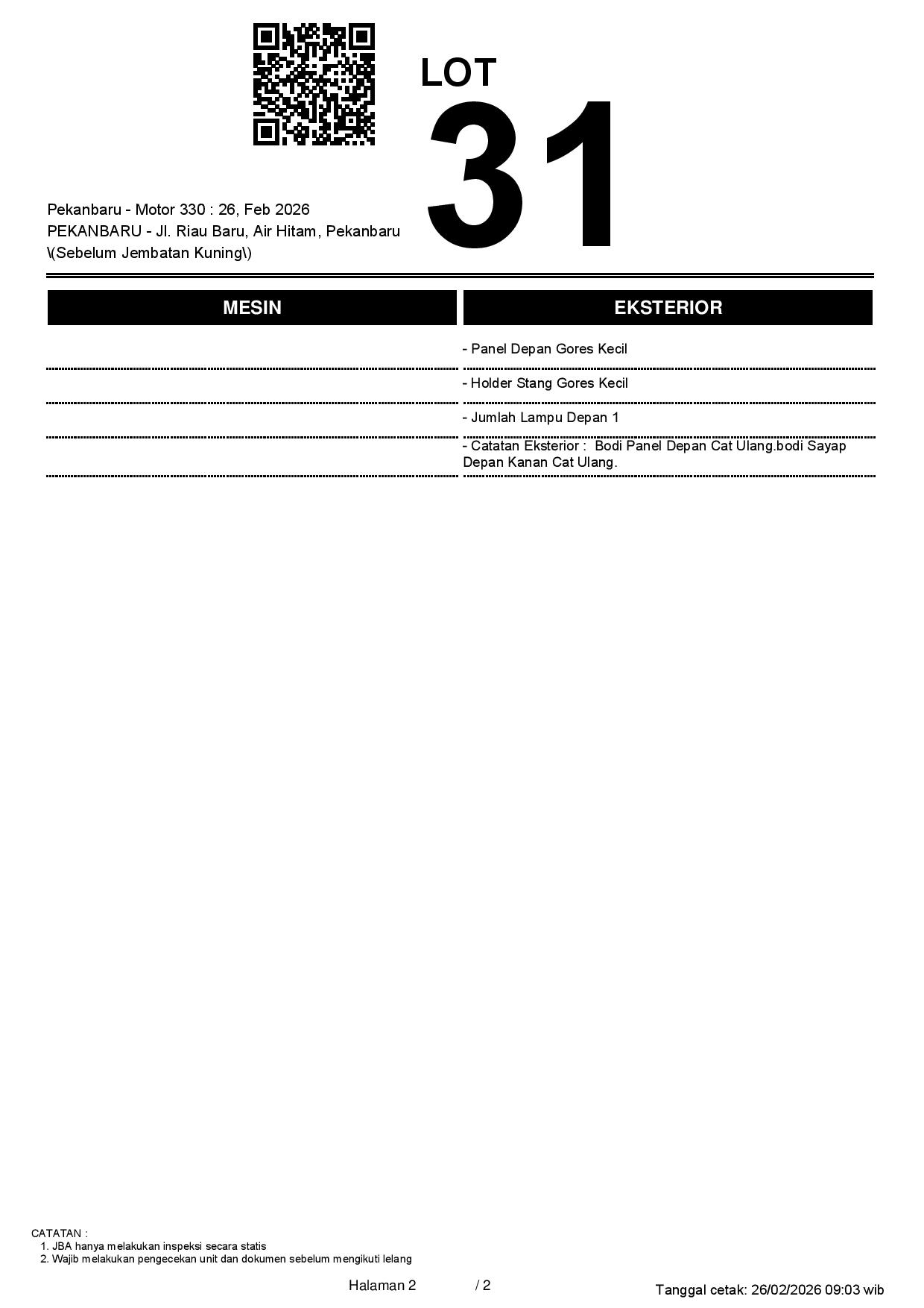 Tanggal Lelang: 26/02/2026 11:00 | WIB