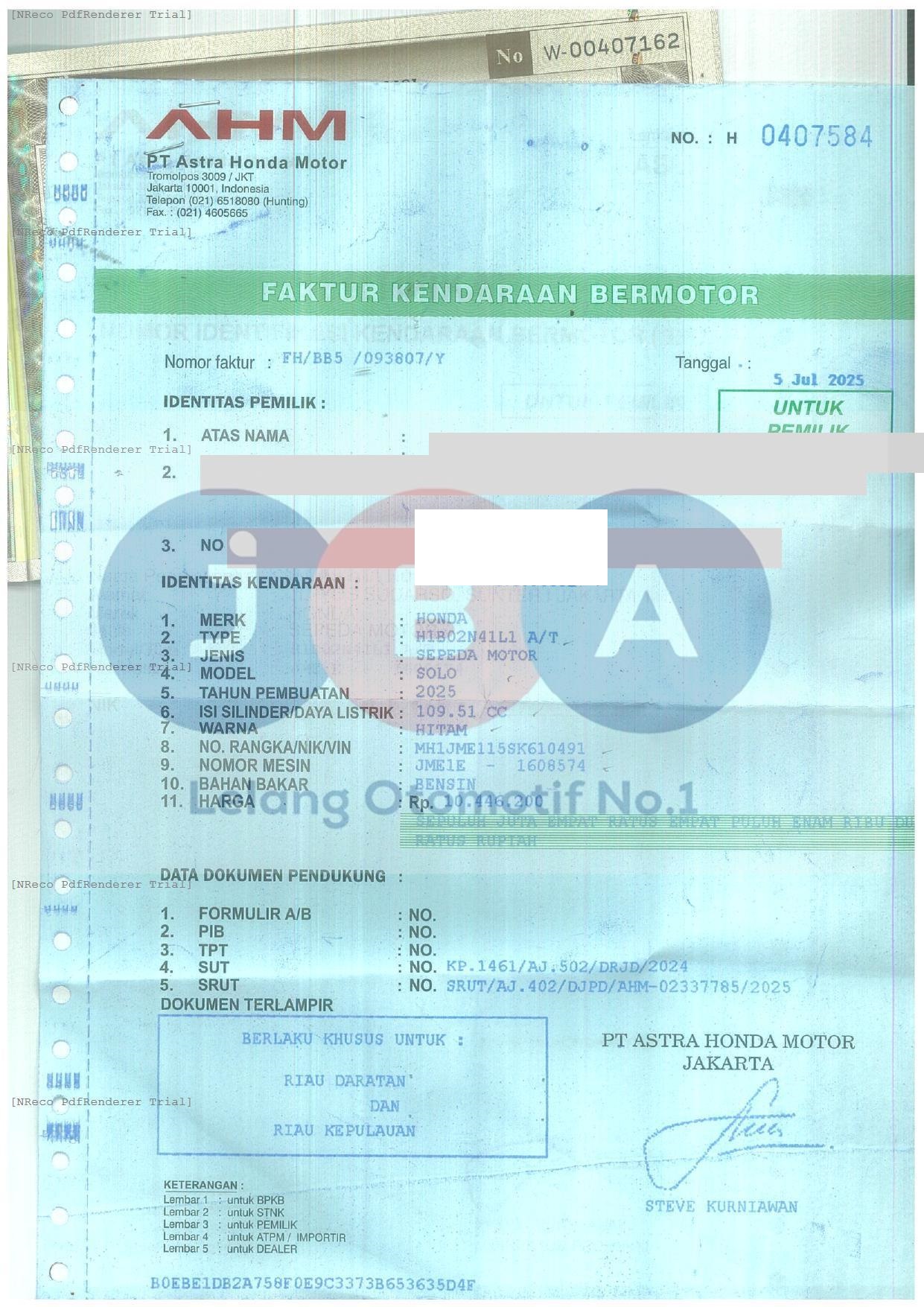 Nomor Rangka