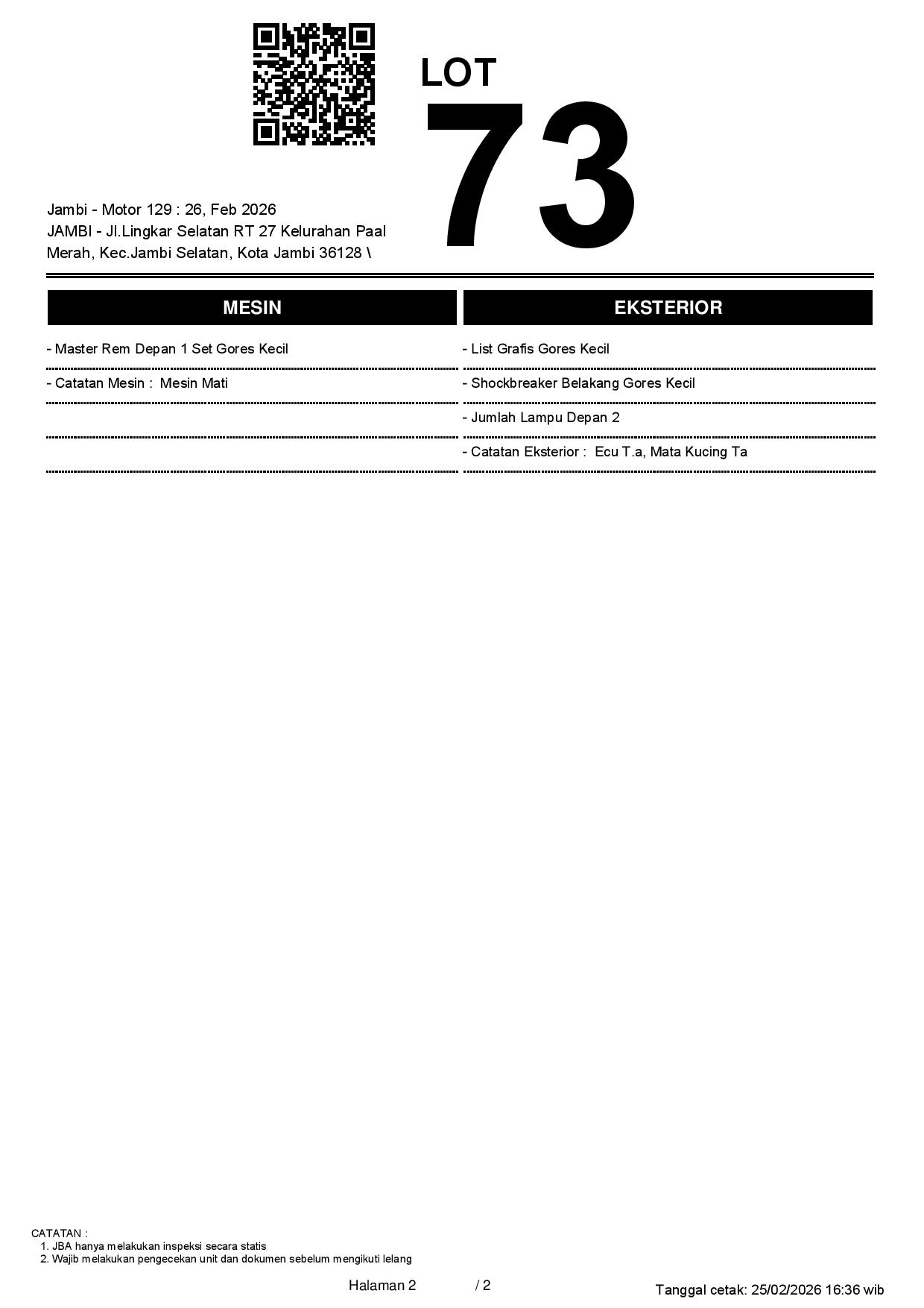2. Peserta lelang wajib cek unit & dokumen