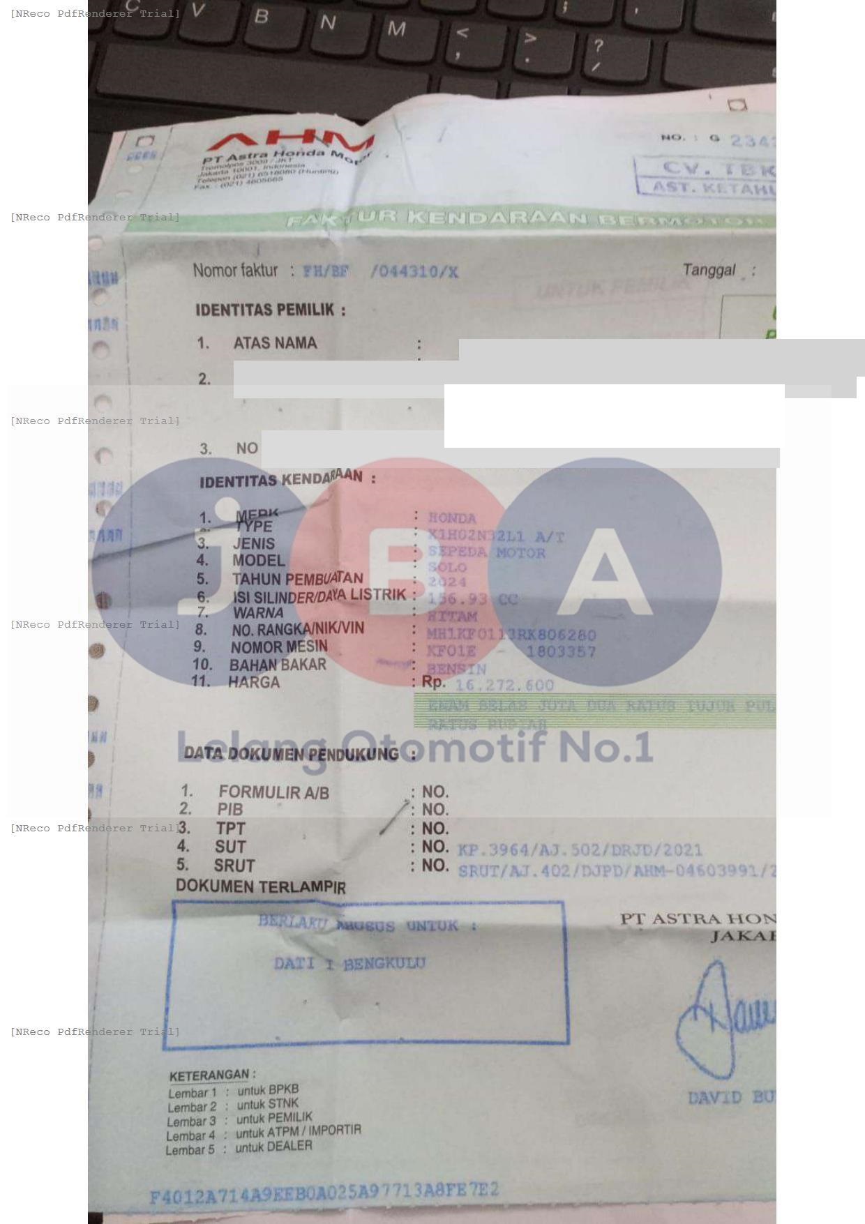 Nomor Rangka