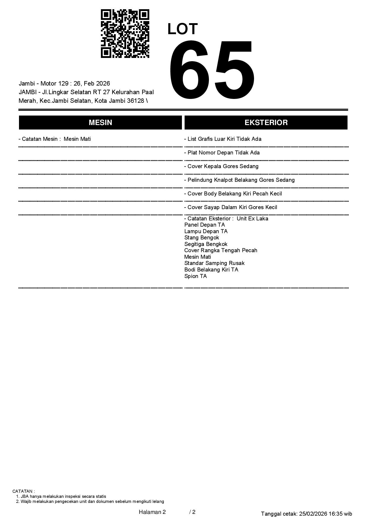 2. Peserta lelang wajib cek unit & dokumen