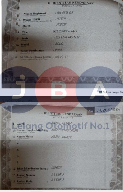WARNA UNIT DI DOKUMEN MERAH HITAM // HANYA ADA STNK, NOTICE PAJAK TA//NOKA ADA KARAT//PEMENANG WAJIB TANDA TANGAN SURAT PERNYATAAN BERMATERAI DI JBA