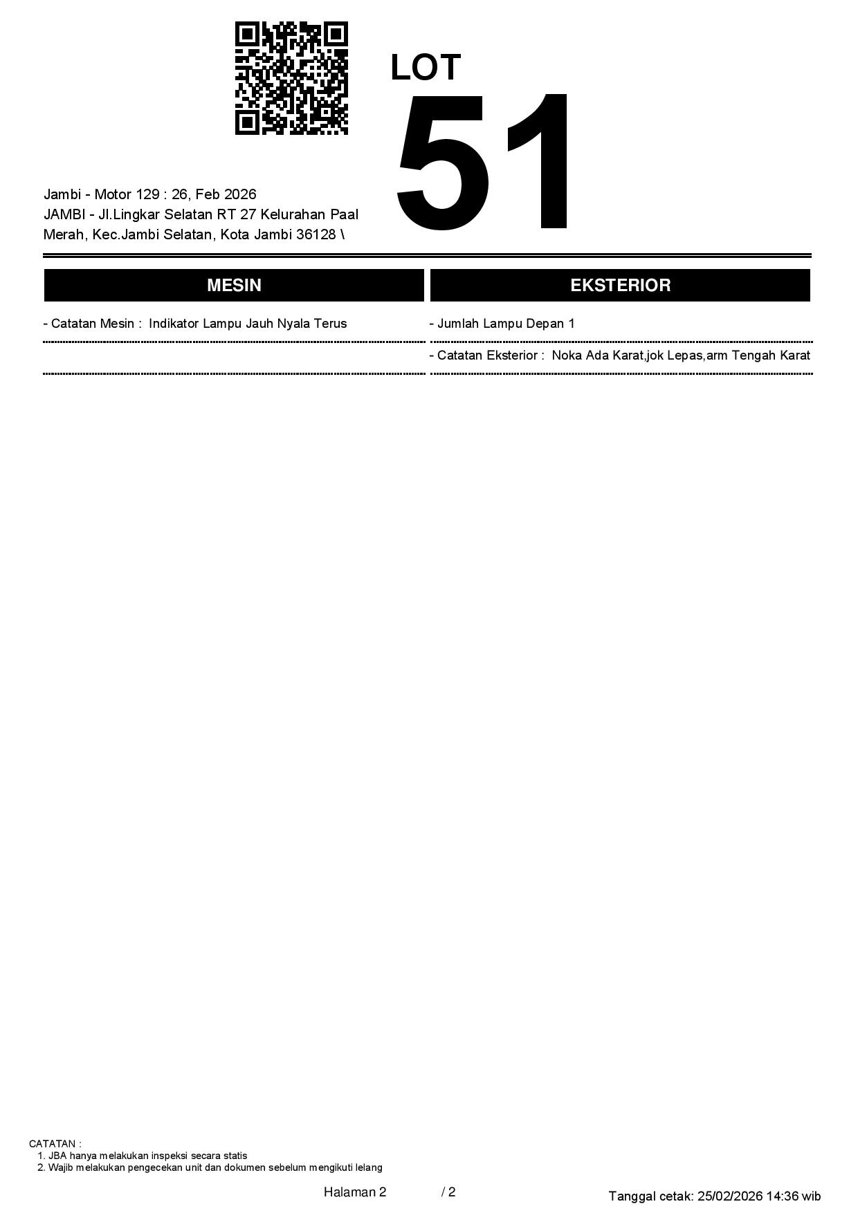 2. Peserta lelang wajib cek unit & dokumen
