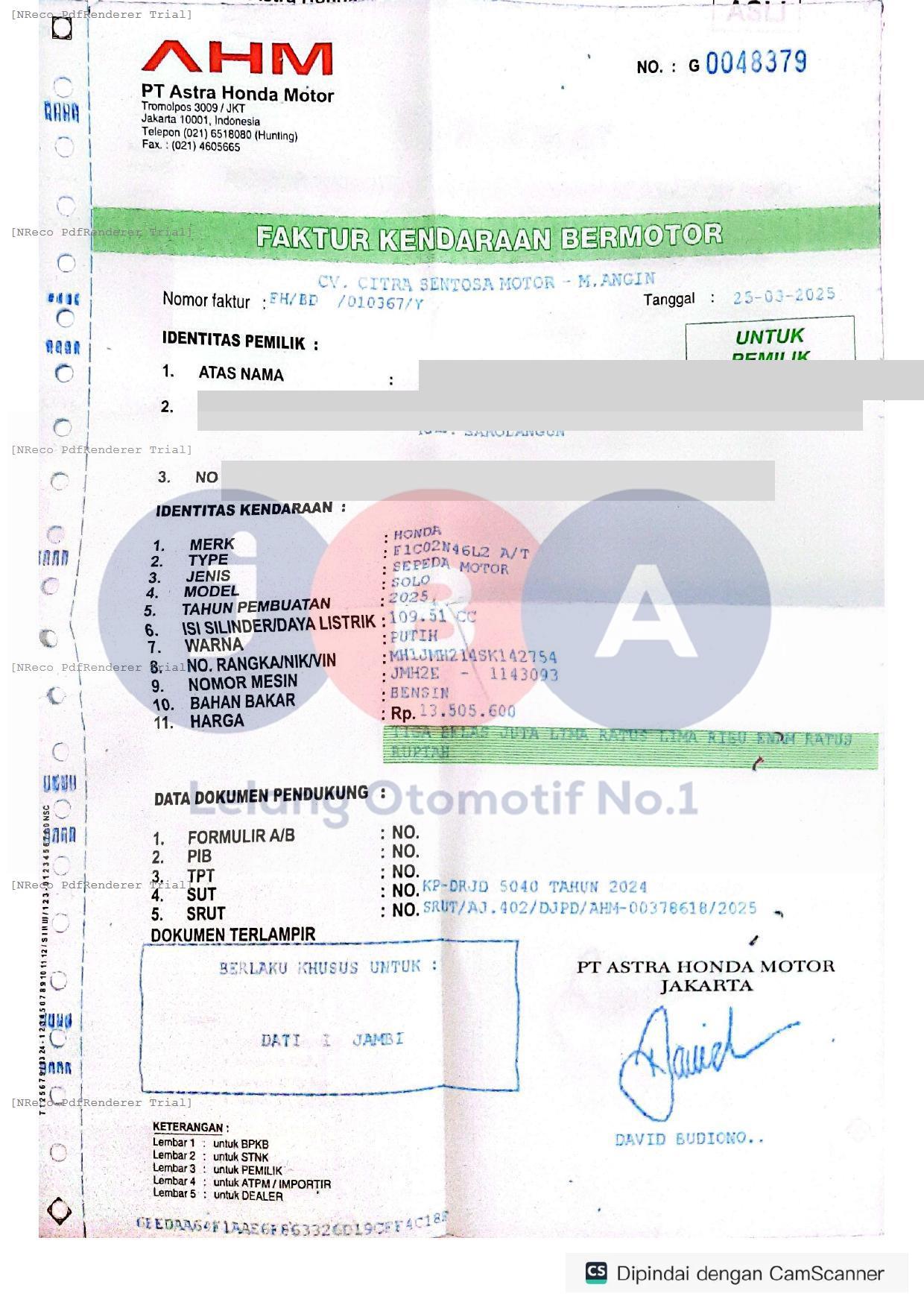 Nomor Rangka
