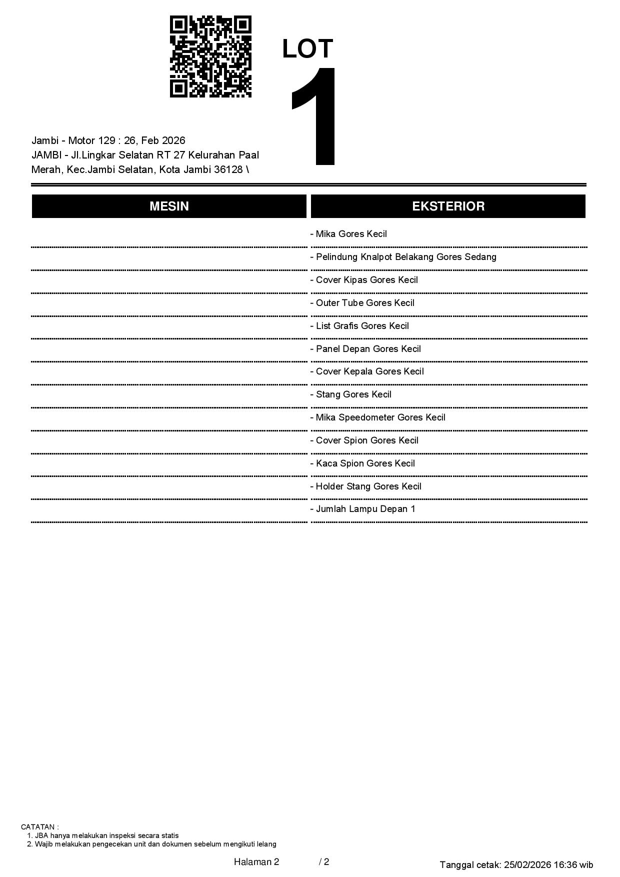 2. Peserta lelang wajib cek unit & dokumen