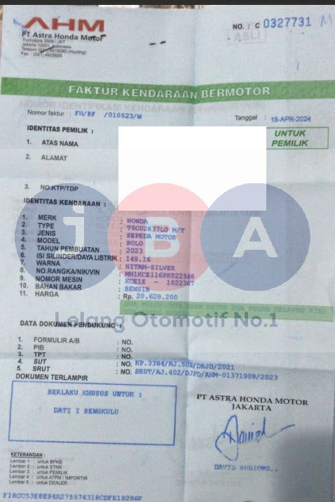 2 DIGIT NOKA TERAKHIR TIDAK TERLIHAT //PEMENANG WAJIB TTD SURAT PERNYATAAN DI JBA WAJIB BERMATERAI // WARNA UNIT DIDOC HITAM SILVER //