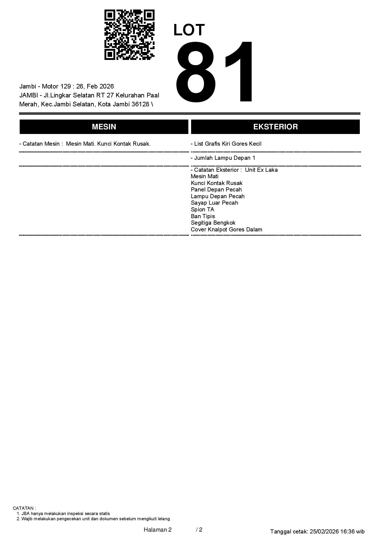 Tanggal Lelang: 26/02/2026 11:00 | WIB