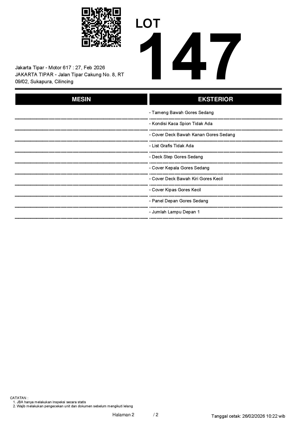1. Peserta lelang wajib cek unit & dokumen