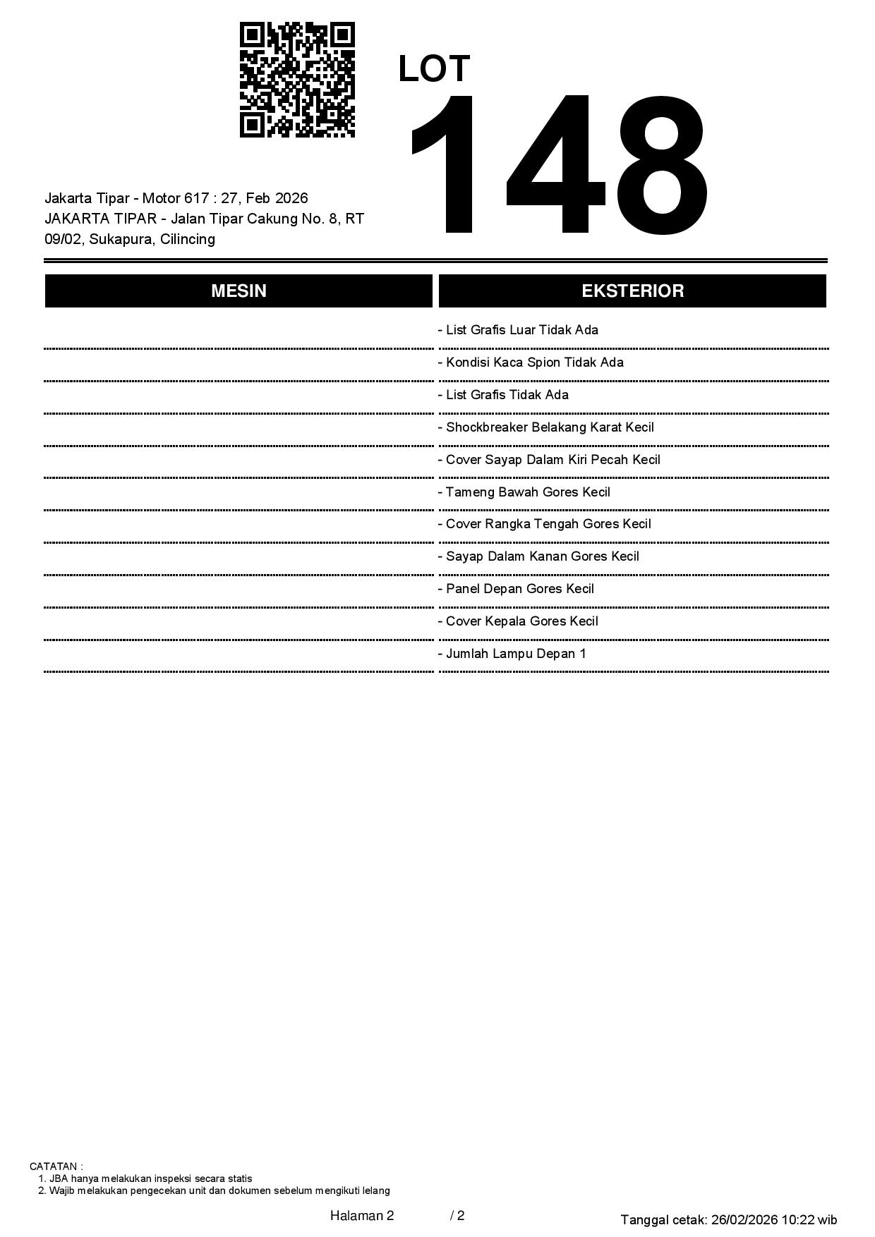 1. Peserta lelang wajib cek unit & dokumen