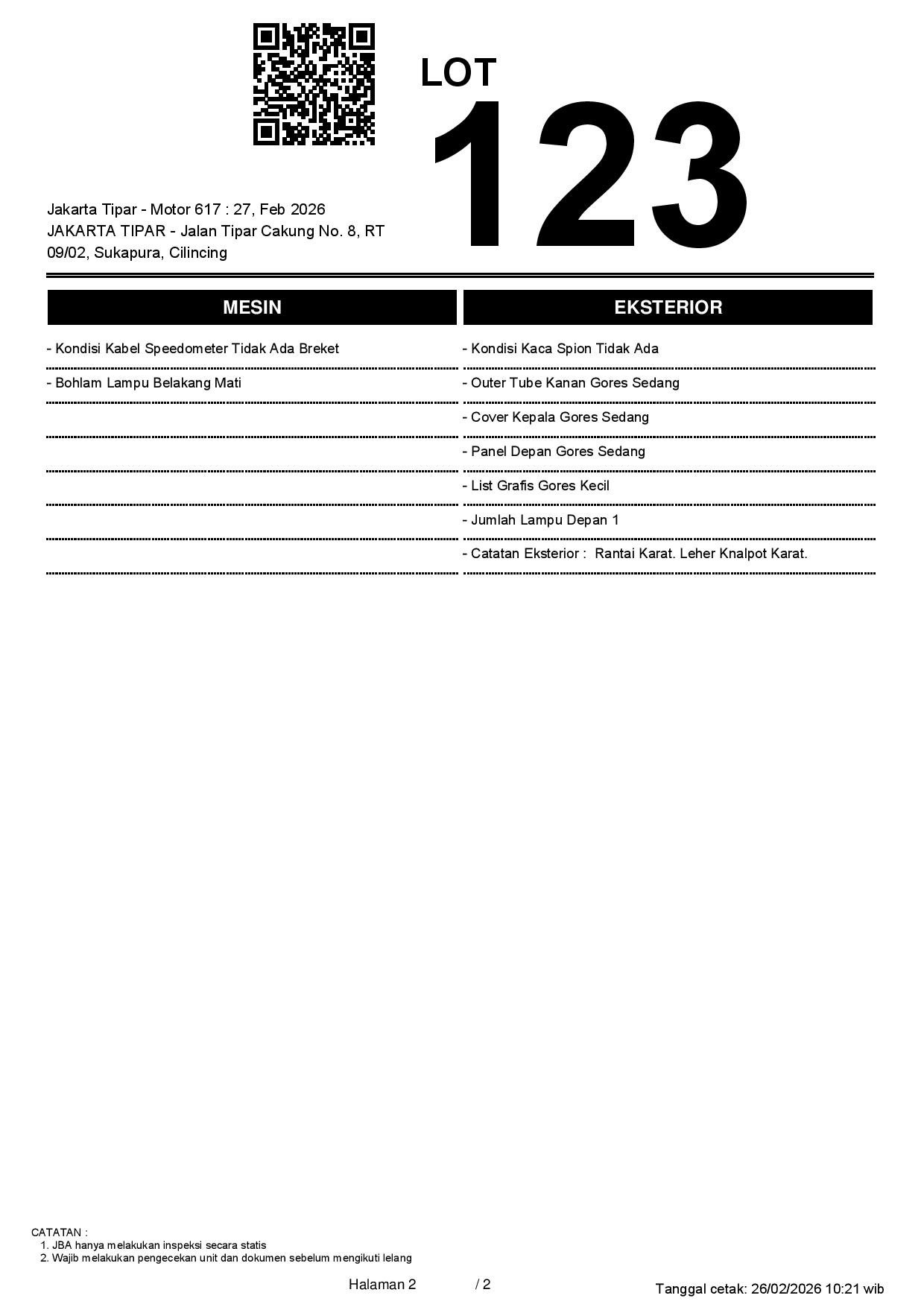 1. Peserta lelang wajib cek unit & dokumen