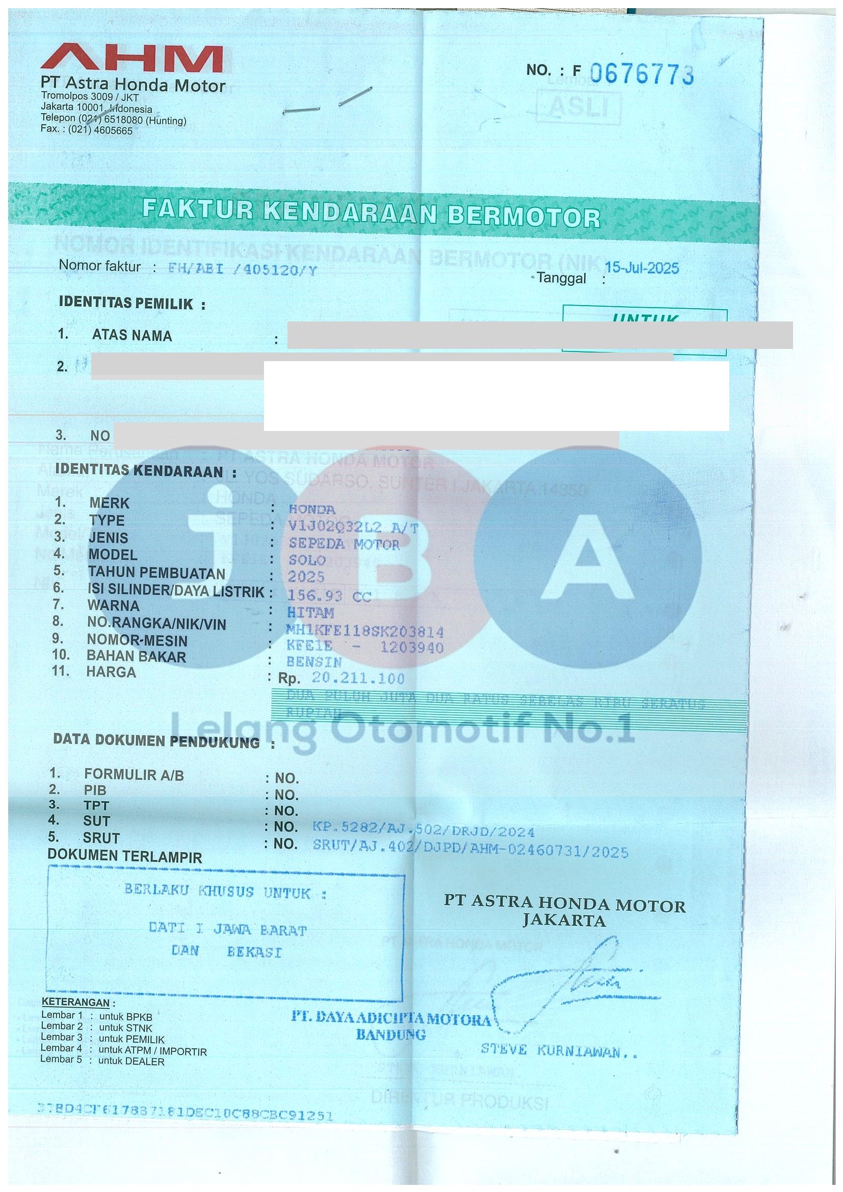 Nomor Rangka