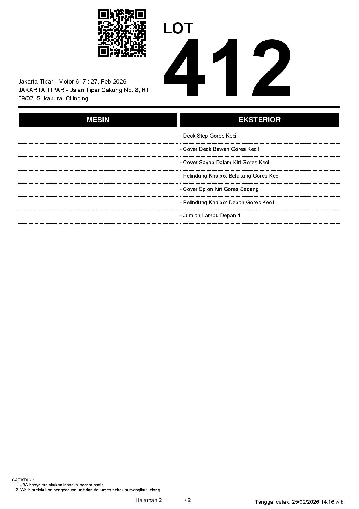 Tanggal Lelang: 27/02/2026 13.5:00 | WIB