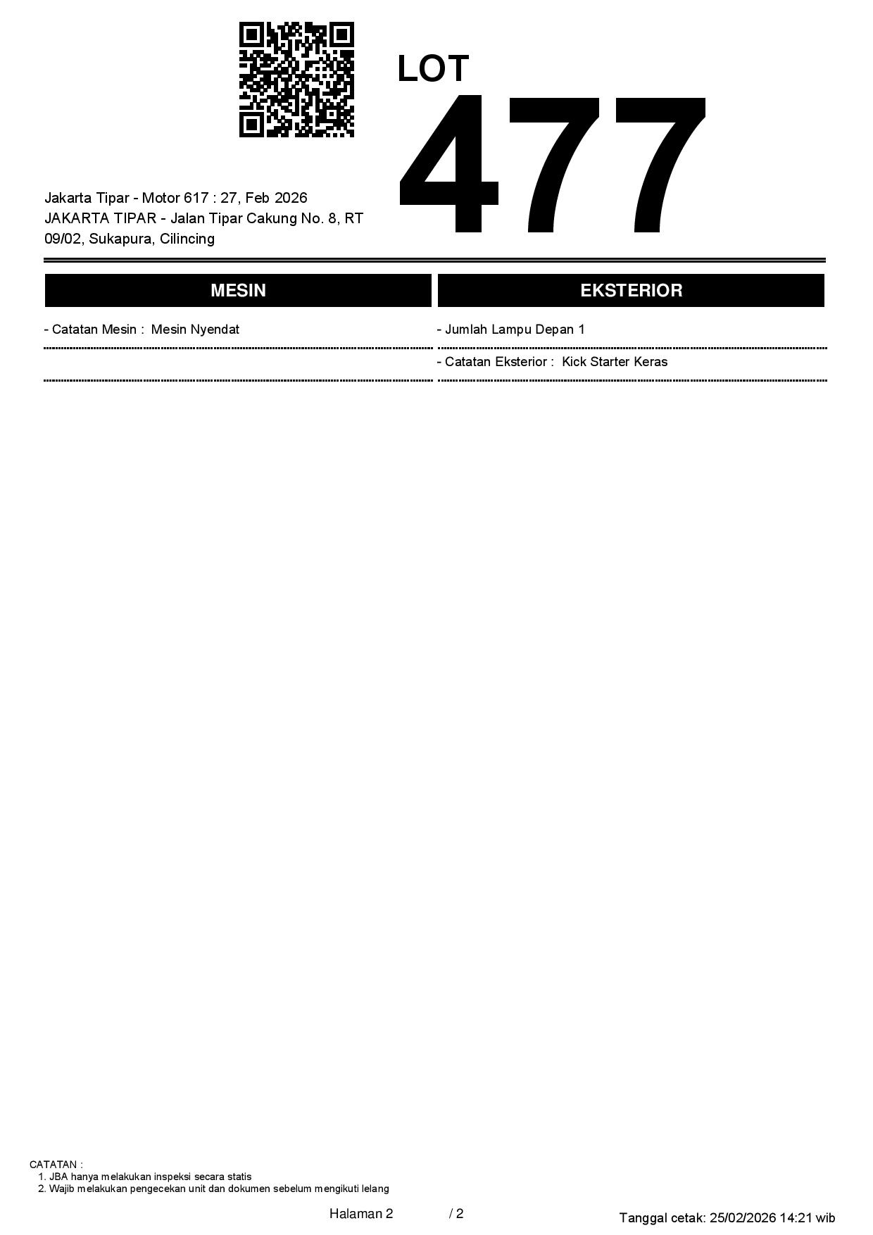 Tanggal Lelang: 27/02/2026 13.5:00 | WIB