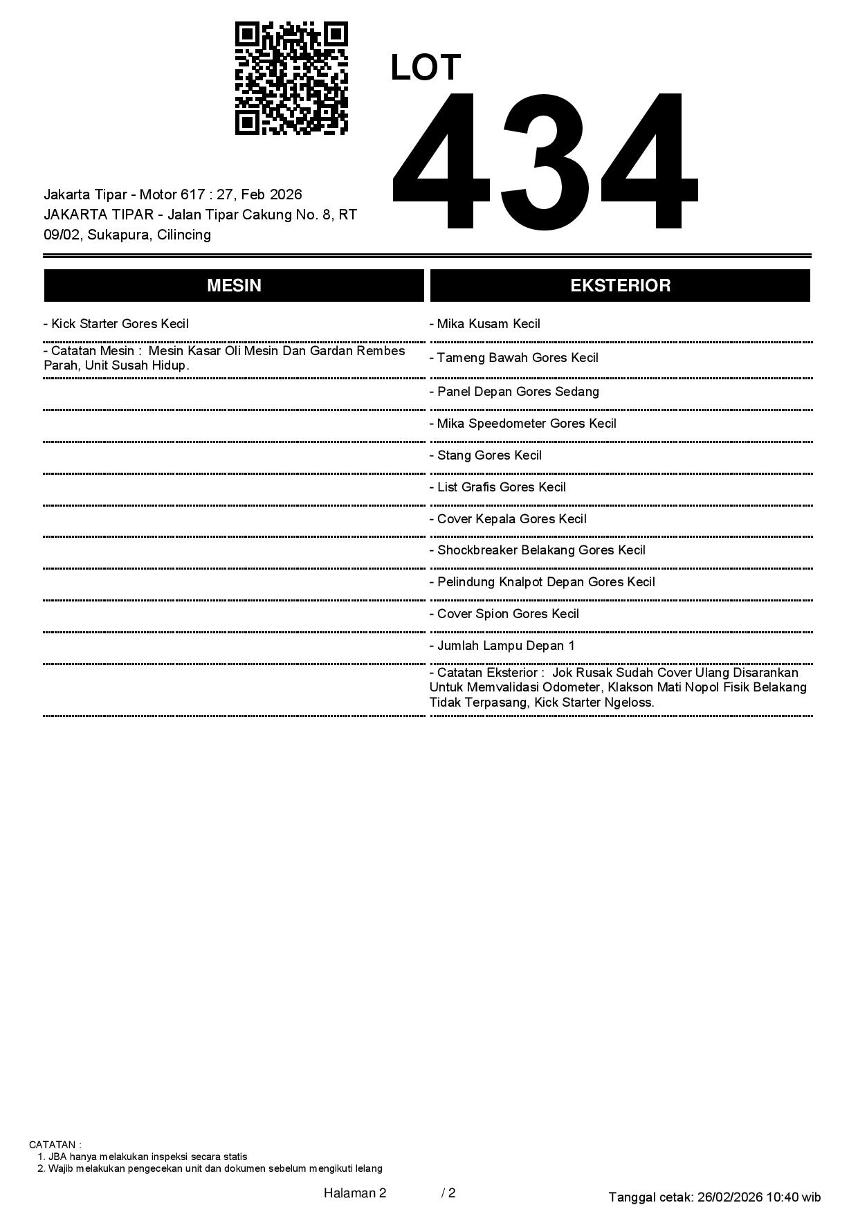 2. Peserta lelang wajib cek unit & dokumen