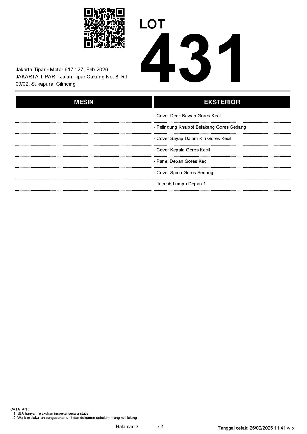 Tanggal Lelang: 27/02/2026 13.5:00 | WIB