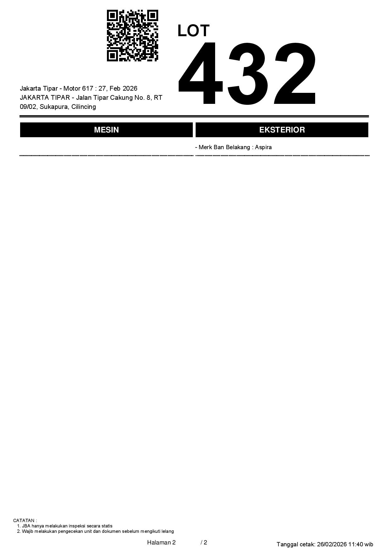 Tanggal Lelang: 27/02/2026 13.5:00 | WIB